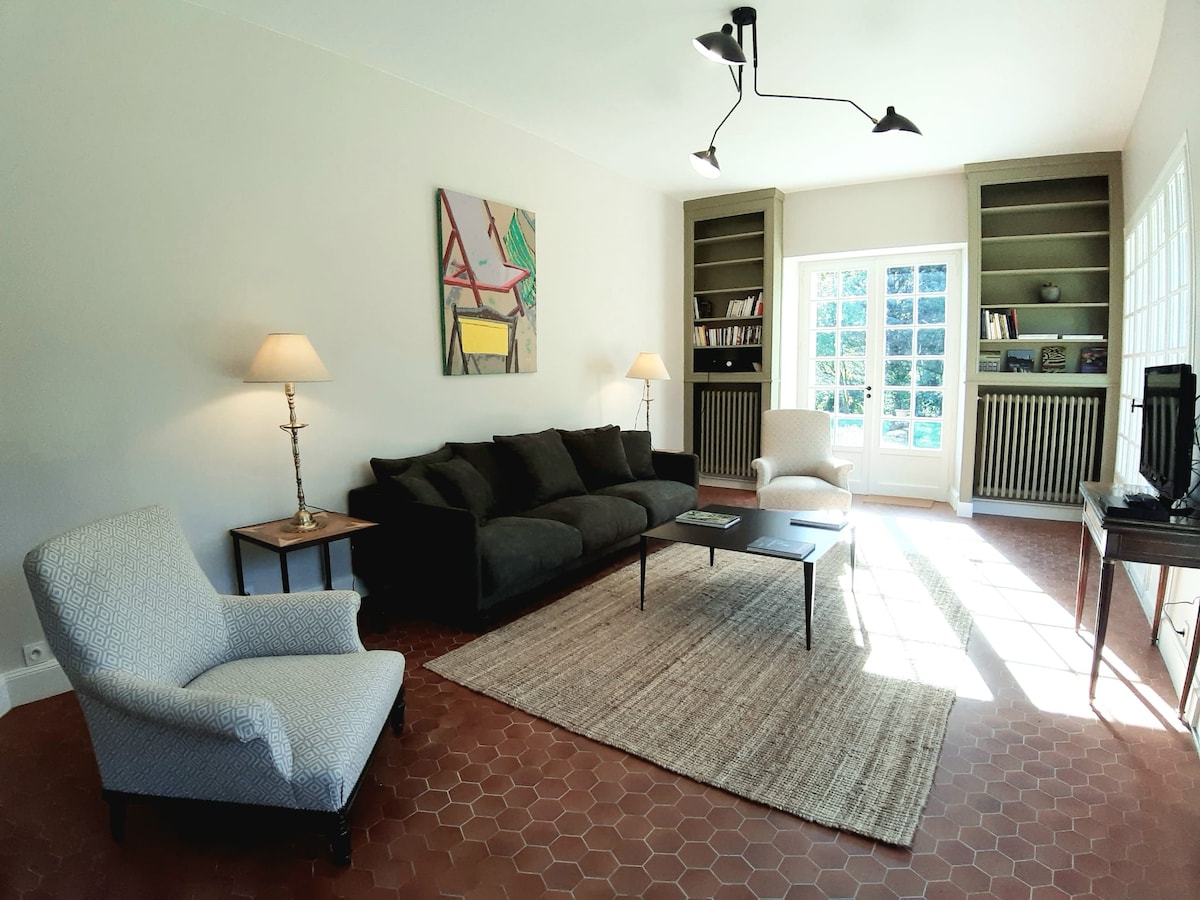 Nous vous proposons cette maison de maître entièrement à votre disposition datant de 1920. Décorée dans un esprit campagne chic, elle dispose de tout le confort d'un hébergement haut de gamme : cuisine équipée, 3 belles chambres (lits Queen size et lit d'appoint), 1 salle de bain, 1 salle d’eau, un très beau salon/séjour avec parquet en chêne, de belles hauteurs et des moulures d'époque.. de quoi passer d'agréables moments en famille, entre amis ou collègues, et profiter du grand jardin arboré.