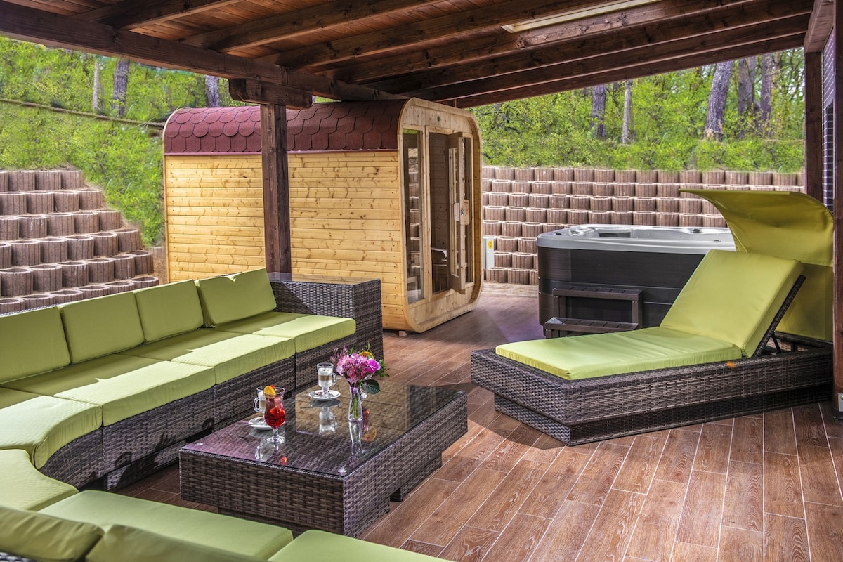 The 120 m² exclusive VIP suite is the most special accommodation unit at Attila Pension, designed to offer our guests a truly luxurious experience – with complete privacy. The suite has its own separate entrance and private parking, so you can relax from the moment you arrive. The spacious interior is connected to a 40 m² completely private, covered terrace, which is exclusively for the use of the suite's guests – with a 2-person jacuzzi and Finnish sauna.