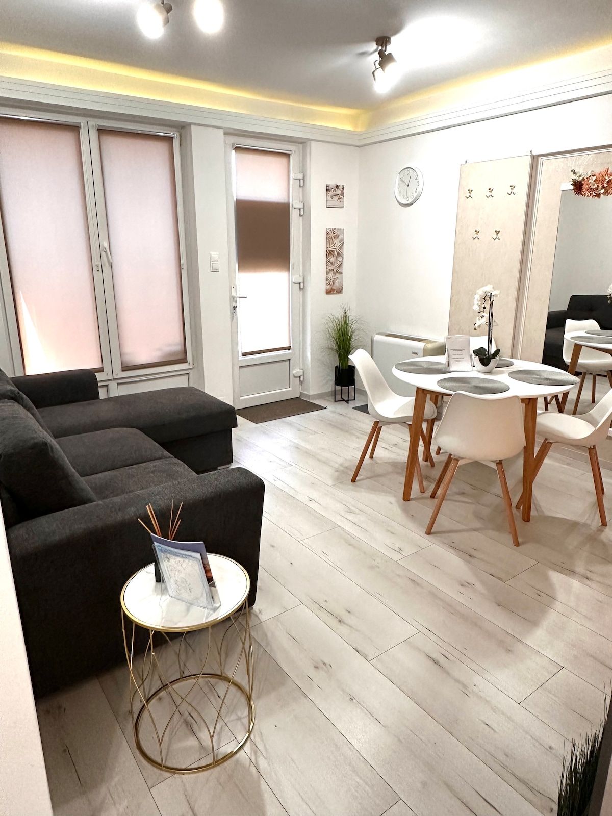 Discover modern urban living in our centrally located Airbnb apartment. This sleek one-bedroom retreat in a contemporary building is an ideal choice for up to four people, thanks to an additional futon. Perfect for solo travelers, couples, or small groups seeking convenience and style. Fedezze fel a modern városi életet központi elhelyezkedésű Airbnb apartmanunkban. Ez a letisztult egy hálószobás menedék a kortárs épületben ideális választás pároknak, barátoknak vagy akár családoknak .
