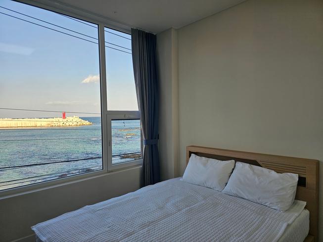 숙박문의 : 응•63삼칠•38일육(문자ㅇ, 전화x) 문자주시면 추가할인안내~~^^ [초근접오션뷰+호텔급넓은객실+족욕탕] 창문 바로앞까지 밀려드는 오션뷰에서 힐링해보세요 바다위에 떠있는 기분은 어떤 오션뷰에서도 느낄 수 없는 힐링을 경험하실 수 있습니다. 바닷가 산책로가 길게 있고 다양한 카페 식당들이 있어서 머물려 힐링 하실 수 있습니다. 객실 침대에서 유명촬영지가 한눈에 보입니다. 관광지 메인자리에 위치하여 접근성 또한 정말 좋습니다. <예약 전 안내 사항> *지도상 위치와 실제 위치는 다를 수 있으니 예약 후 주소 확인해 주세요. *건물 뒤에 주차장이 넓게 있어서 걱정하지 않으셔도 됩니다. *객실 내에서 간단히 취사 가능합니다. 하지만 고기 굽기, 게포장은 안되니 미리 확인해 주세요. 따로 바베큐장도 마련되어 있지 않습니다. *건물내 금연이고 외부에서 부탁드립니다. .