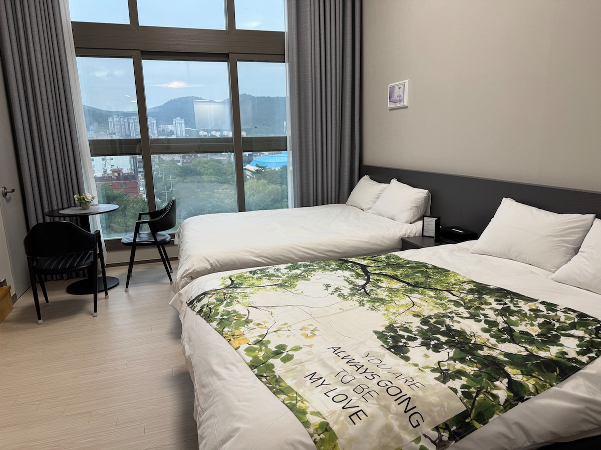 (特价)#露台海景/码头/Yeocheon站10分钟/步行1分钟到达商场/3人间(2张床)/现代简约/免费停车