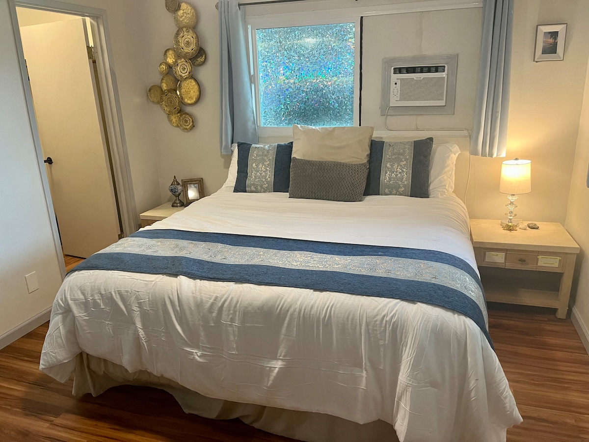 Private/separate from the main house guest studio in lovely Hakalau village. NEWLY RENOVATED for more square footage & A/C. Easy access and parking, comfortable queen bed, private bath, spacious shower, HD Smart TV, cable, high speed WiFi and kitchenette. Lush landscaping and private bistro garden. A short walk from the house is a spectacular rainforest hike down to the shoreline. Surfing, ziplining, waterfalls, hiking, biking, horseback riding and more within a short drive from the house.