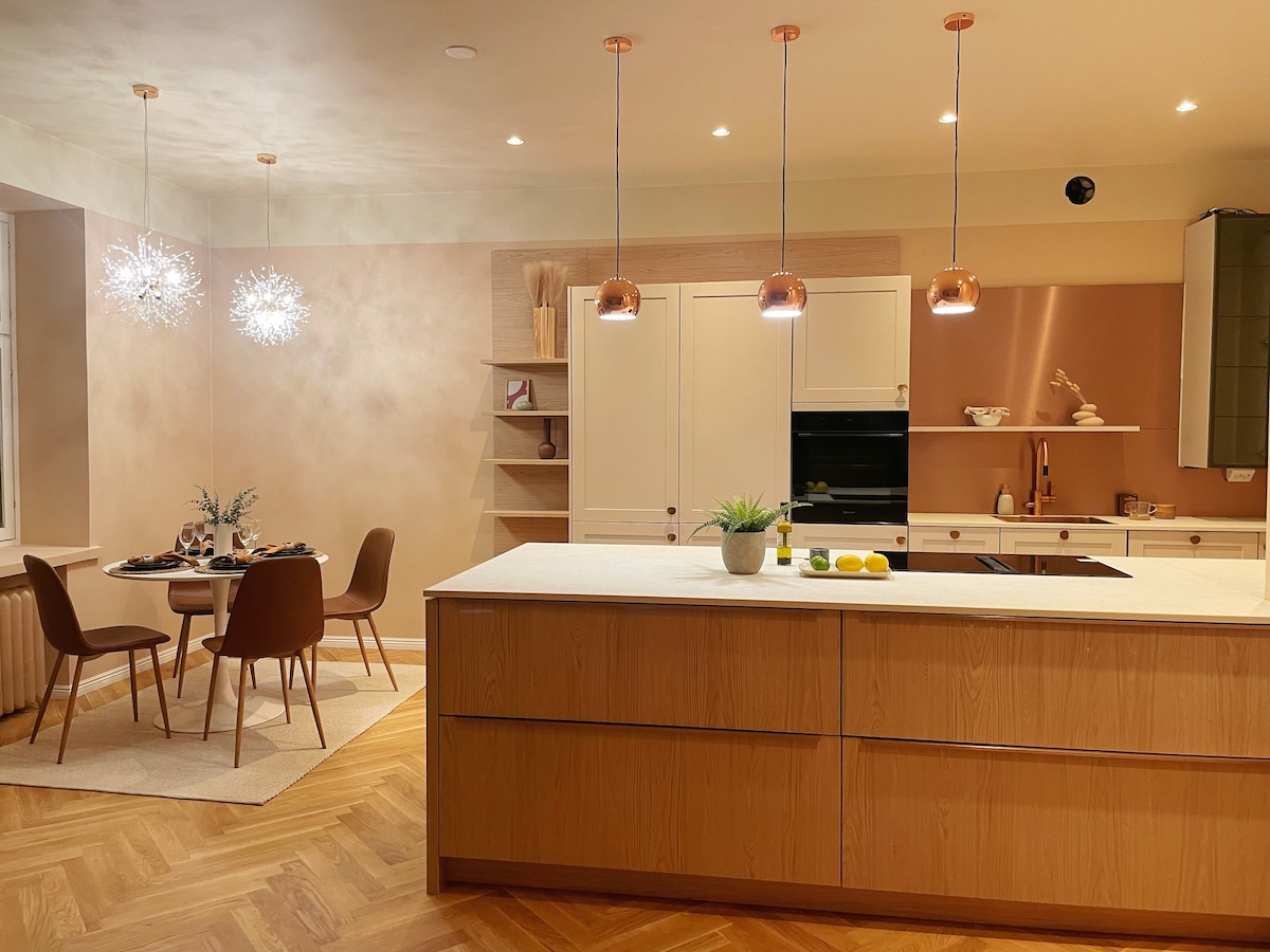 This furnished spacious studio apartment comes with warm colors and a fully equipped open layout kitchen. This studio is well suited for short and long term stays with a spacious layout, large Jugend-style windows, and plenty of closet space. Get the practical things like a fully equipped kitchen, washing machine, fast WiFi, 24/7 support, and regular professional cleaning, and fun stuff like a smart TV. Stay in comfort for as long as you’d like – days, weeks or months.