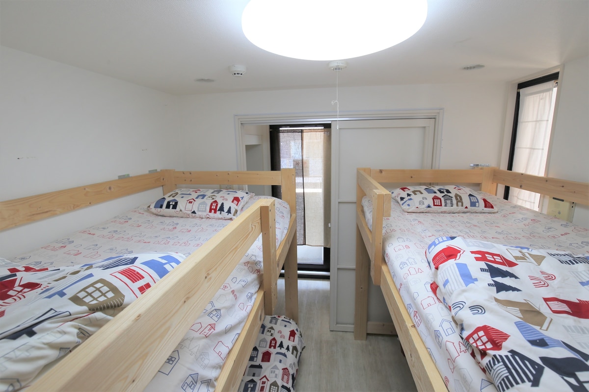 交通便利,徒步6分至博多站,可住4人,两张大床,独立卫生间。