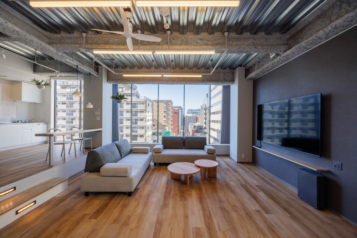 This cleverly designed room has all the things you need to make your stay comfortable and homely. Tenjin subway station, Akasaka station, Tenjin bus station, & Nishitetsu Fukuoka station are 10-11 minutes walk away, making this extra high ceiling room is a perfect base to explore Kyushu. It is situated in the heart of famous shopping area, Tenjin- Daimyo. Surrounded by local restaurants, cafes, convenient stores, and shops with great access to public transportation. A parking lot is right next.