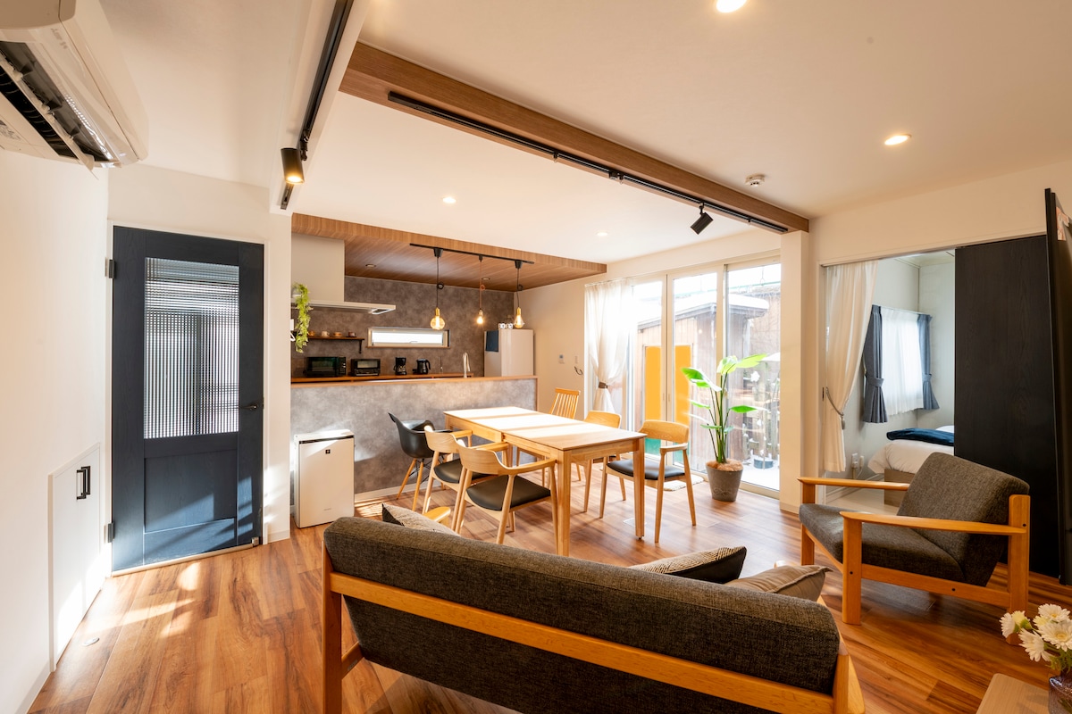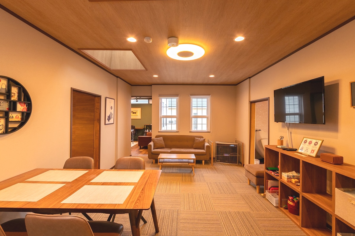 【宽敞平房】亲子首选 / 厨具齐全 / 按摩椅 / 步行5分至车站 这是一栋翻新过的日式单层古民家(3LDK)。 特点是**“宽敞”且“无楼梯”**,3间卧室均直通客厅,非常适合带老人和小孩的家庭。 设施与厨房: 房内有整体厨房(System Kitchen)和齐全厨具。您可以去附近的超市(步行5分)购买函馆海鲜,亲自下厨。还有按摩椅和孩子喜欢的玩具! 位置与注意事项: 位于函馆西端的安静住宅区,虽然远离市中心喧嚣,但前往主要观光区(索道、仓库群)仅需车程5分钟。 路面电车站(终点站):步行5分钟 便利店 & 超市:步行5分钟 温馨提示:从电车站到房源是一段缓坡。虽不陡峭,但若携带大件重行李,请您留意。 期待您在此留下难忘的回忆!