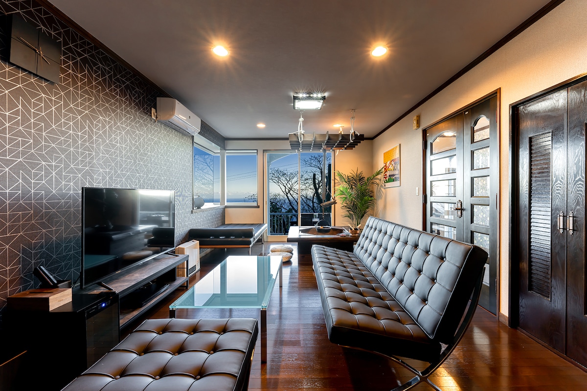 This listing is located in the holiday villa area in Ajiro which is only 10 minutes away from Atami Central. As it is located in higher level, every room has the great ocean view! Enjoy the beautiful view in a comfortable queen bed, living room or balcony. Also this accommodation has a stone-made traditional styled bathroom where you can enjoy the natural hot springs :-) Please get relaxed in this new accommodation built in Apr 2021 and enjoy your trip in Atami!