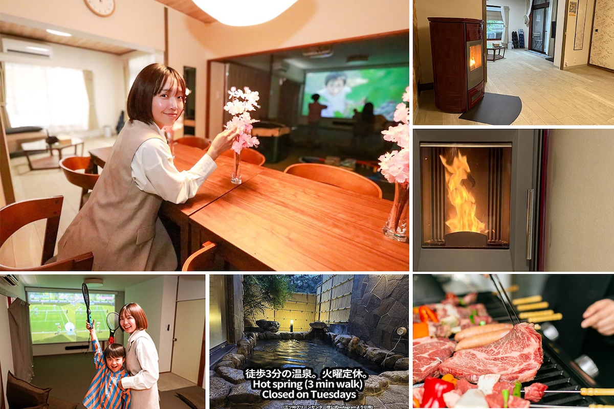 灯光舒缓的196㎡私人住宿/温泉步行3分钟/烧烤、剧院、游戏、富士急高原20分钟车程