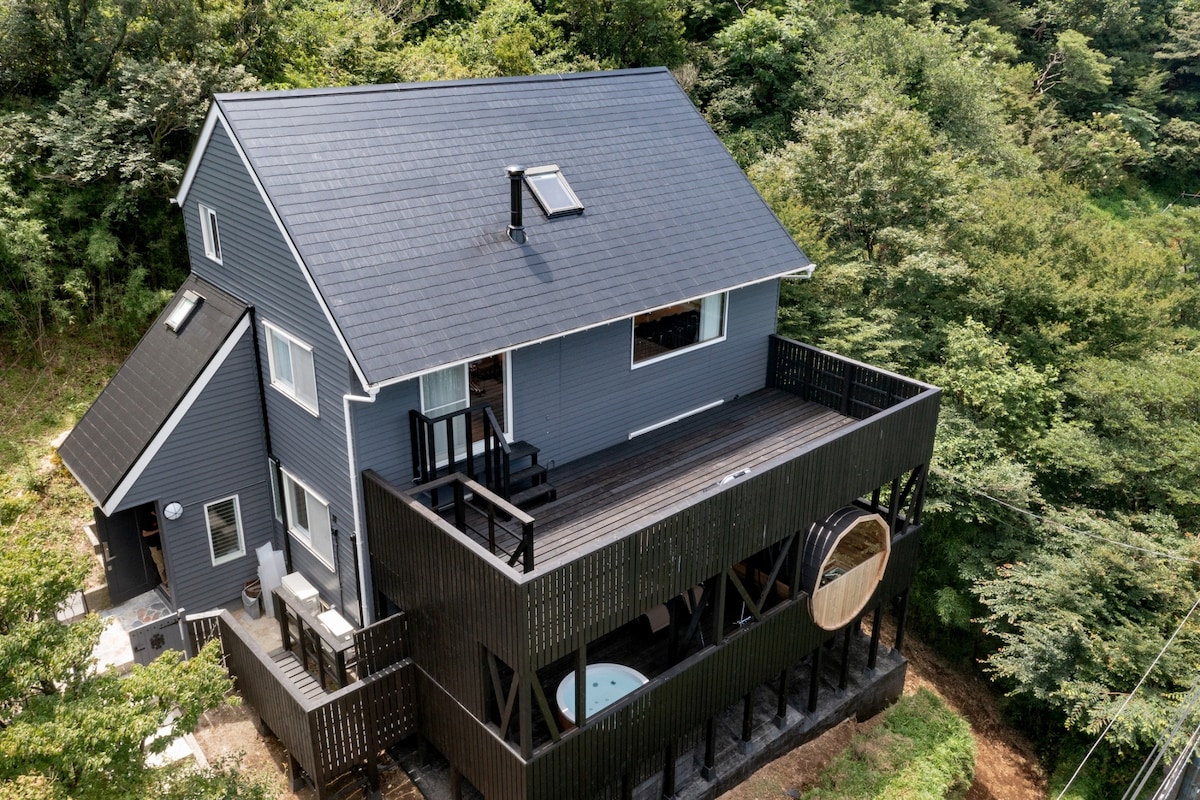 A secluded villa with a sauna surrounded by nature. Located about 5 minutes by car from Hakone-Yumoto Station, it's a quiet hideaway in the forest. Featuring a barrel sauna with a half-moon window, fresh mountain spring water, and relaxation under the starry sky. Perfect for sauna enthusiasts, with options for BBQs and campfires. Enjoy precious moments with loved ones, whether lively or serene. Experience "silence" away from the city, immersed in nature.