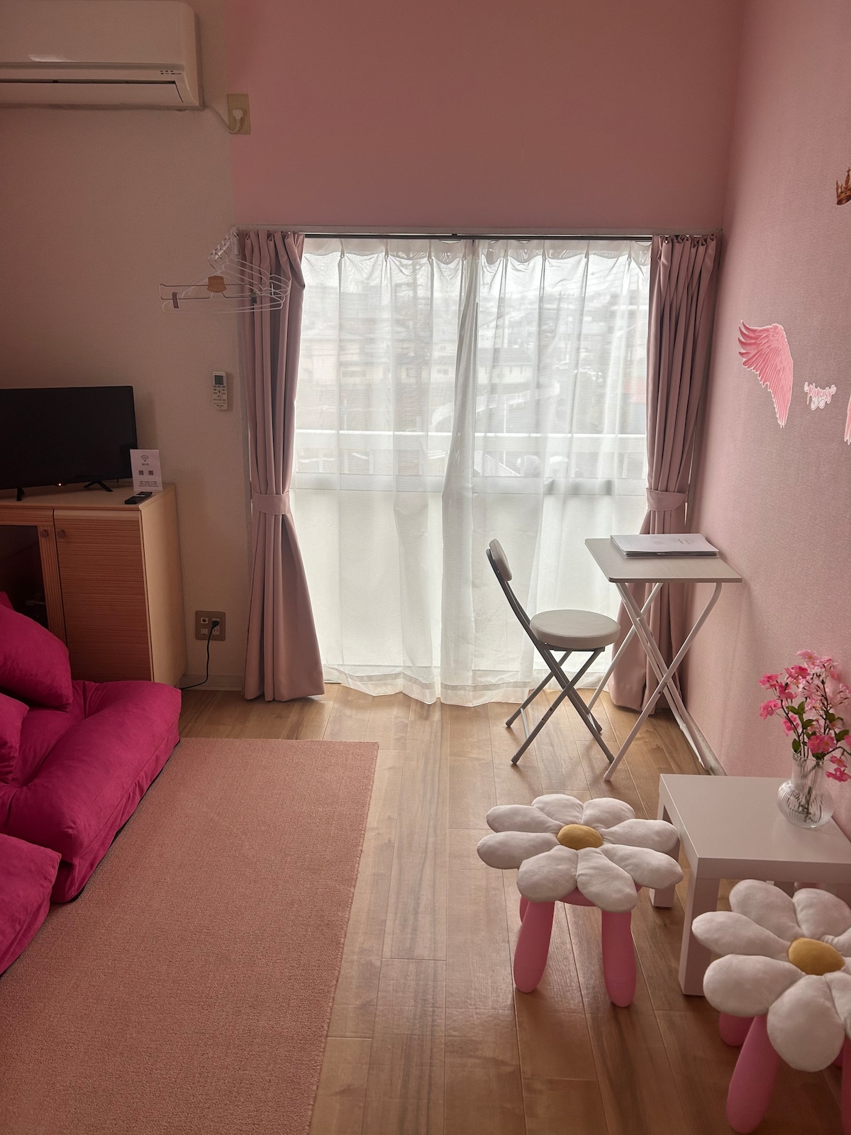 桜が舞う春の風景が心に優しい余韻を残す。 ゲストハウス富士桜でいつもと違ったお花見体験を... 「ゲストハウス富士桜」はいつでもお花見気分が味わえる、桜と富士山でいっぱいのお部屋をお楽しみいただけます! シングルベッド2台、布団2組で、最大4名までご宿泊いただけますが、2名が適正人数のコンパクトなアパートの1室です。 敷地内無料駐車場有り。 「富士桜」のポールがある駐車場をご利用ください。(軽自動車からコンパクトカーサイズ) 御殿場インターから車で2分。 御殿場駅は徒歩18分、タクシーで5分の距離にあります。 小田急箱根高速バス御殿場営業所、 小田急ハイウェイバス 御殿場と箱根や横浜、羽田空港、新宿方面を結ぶ便利なバス拠点です。 ご友人同士、カップル、ご家族、お一人様など、どなたでも快適にお過ごしいただけます。 近隣にはコンビニや飲食店、スーパーマーケットがあり買い物にも便利です。 レトロでコンパクトなお部屋ですが、思わず写真を撮りたくなるような、日本を感じられるこだわりポイントをたくさん詰め込みました。非日常的な素敵な時間をお過ごしください。