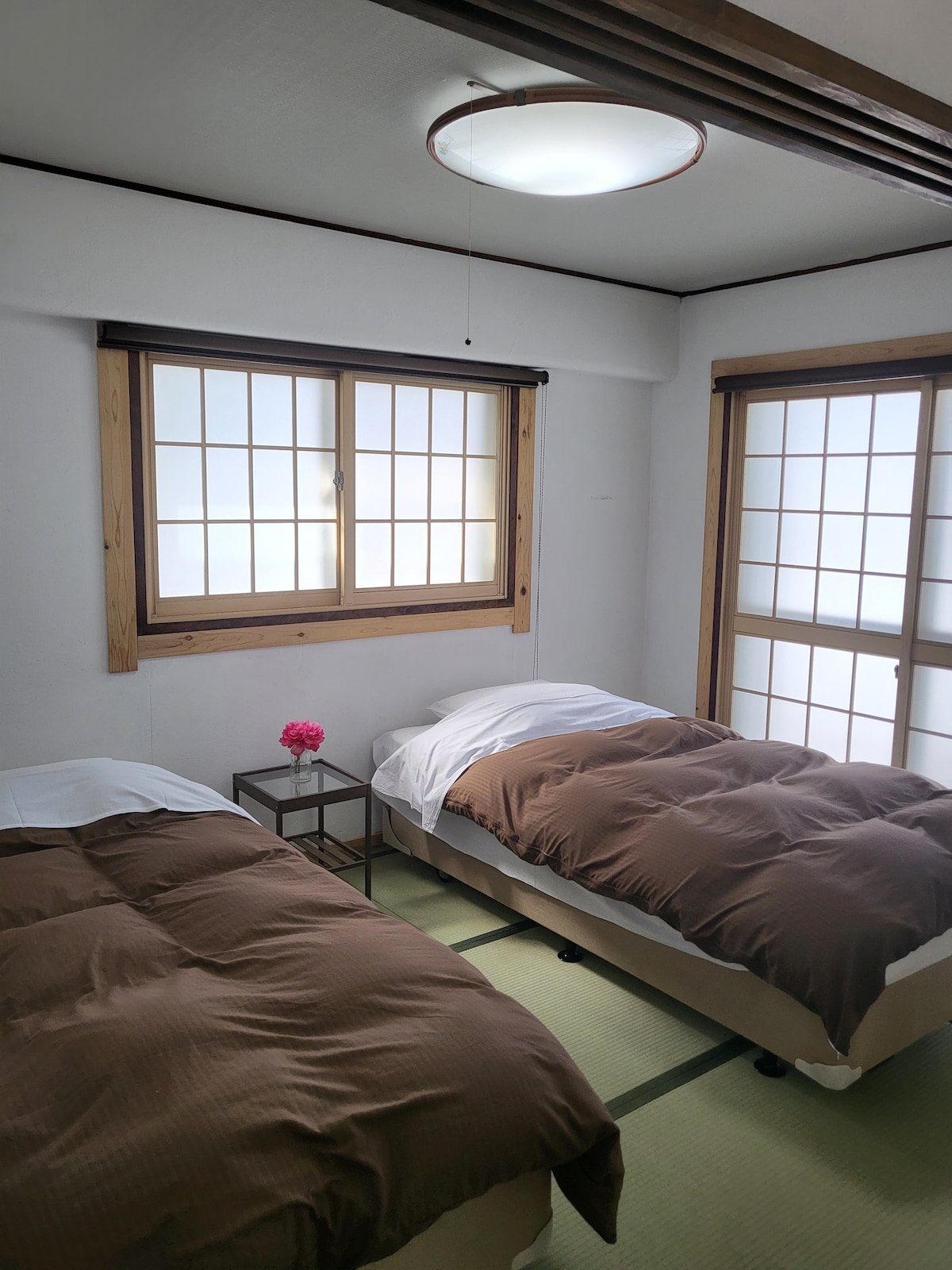 This is a fully self contained 2 bedroom 1-1/2 bathroom that has been completely refurbished from the ground up, incl. under floor heating, new oak hardwood floors through out All new bathrooms and kitchen, very close to Hakuba station & downtown. Actually this apartment can accommodate 4-7 peoples using couch, futons.