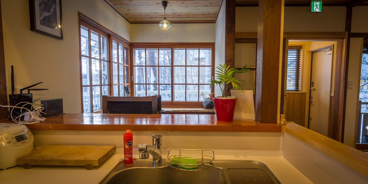 Larch Peak chalet is newly renovated with a warm wood interior, custom wooden furniture and fully upgraded modern facilities. It's beautifully situated in a forested neighbourhood close to the Hirakawa river. Restaurants, bars and a convenience store are a close walk.