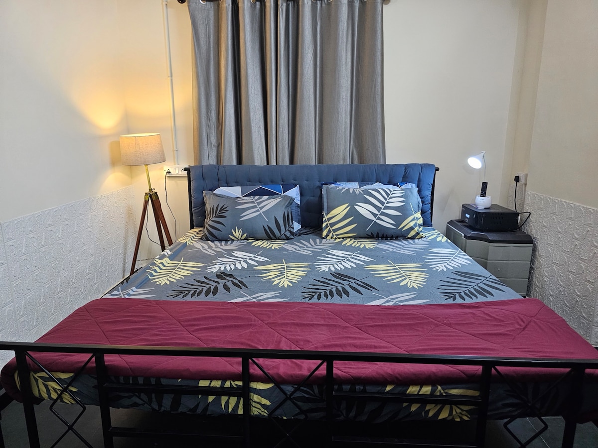 Experience our brand new, luxury 1-BHK apartment, ideal for couples and travellers seeking comfort and privacy in a central location. The bedroom has a king bed with soft orthopedic mattress for a restful night's sleep. Relax in the cozy living room with a 43-inch Smart TV, lightning-fast WiFi and a dedicated dining area. Comes with a super clean bathroom stocked with bath essentials. The fully equipped kitchen includes high-quality appliances and crockery for your culinary adventures!