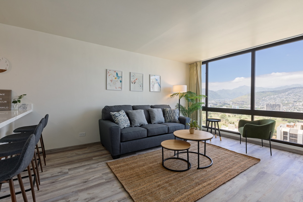 Aloha and welcome to one of the most amazing complete remodels you will find in Waikiki - completed end of 2022. This one-of-a-kind 1 bedroom with free 1 parking stall, pool and gym boasts spectacular ocean & Diamond Head views and is only 0.2 miles (5 min walk) from Waikiki Beach and closer to endless restaurants, shopping & so much more. We would love to have you stay with us and create memories in this truly magical place that is centrally-located, well appointed, and with fabulous views!