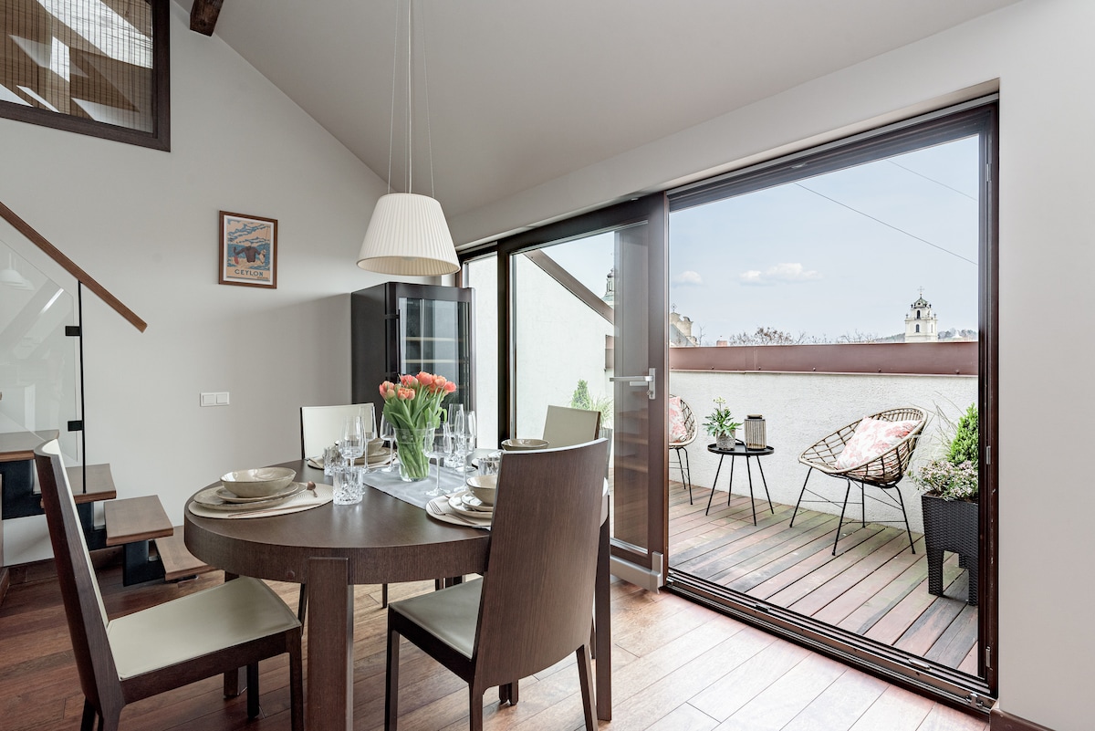Welcome to our charming 4-bedroom duplex apartment in the heart of Vilnius. With a spacious lounge, fully equipped kitchen, two bathrooms, and a cozy balcony, it's your perfect urban retreat. Be inspired by original fine art and relish the exceptional views of Gediminas Castle, the Hill of Three Crosses, and the centuries-old church towers. Bask in the authentic bell music of historic churches and explore the vibrant cafes, galleries, shops and restaurants right on your doorstep.