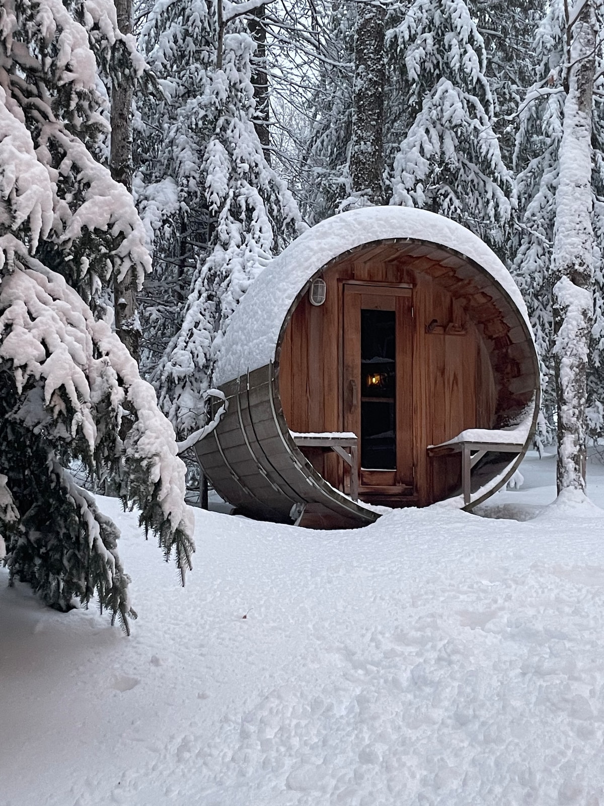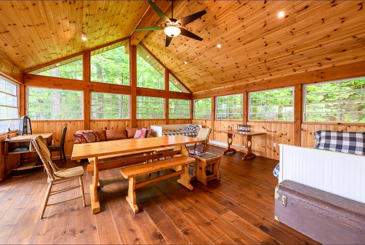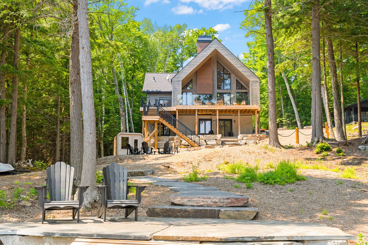SKI-IN/SKI-OUT Lodge style cabin in a 2 acre forest directly on Sir Sam's Ski & Bike. Enjoy the ease of ski-in/ski-out, snow shoeing, hiking or biking right from the beautiful deck which over looks an 8-person hot tub, 20' sauna and a unique firepit. In the summer take a short walk to Eagle Lake public beach and boat launch for fishing/swimming. Endless adventures near by like the Haliburton Forest, dog sledding, wolf center and so much more! EV fast charging station available for our guest!