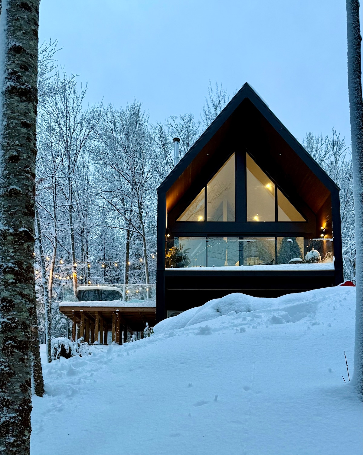 Lakefront, A-frame, 4 season cottage in the Haliburton Highlands with convenient access to Haliburton. Indoors ➤ Floor to ceiling windows (20ft+) ➤ 3BR - 1 King, 2 Queens ➤ Fireplace - wood provided ➤ Fully stocked kitchen ➤ Linens provided ➤ Reliable internet Outdoors ➤ Screened-in lake view porch ➤ Sauna seats 6 ➤ Bonfire pit - firewood provided ➤ Weber BBQ ➤ Great swimming & fishing from our 40ft dock Our pricing includes HST. 2.5 hrs from GTA on Long / Miskwabi Lake