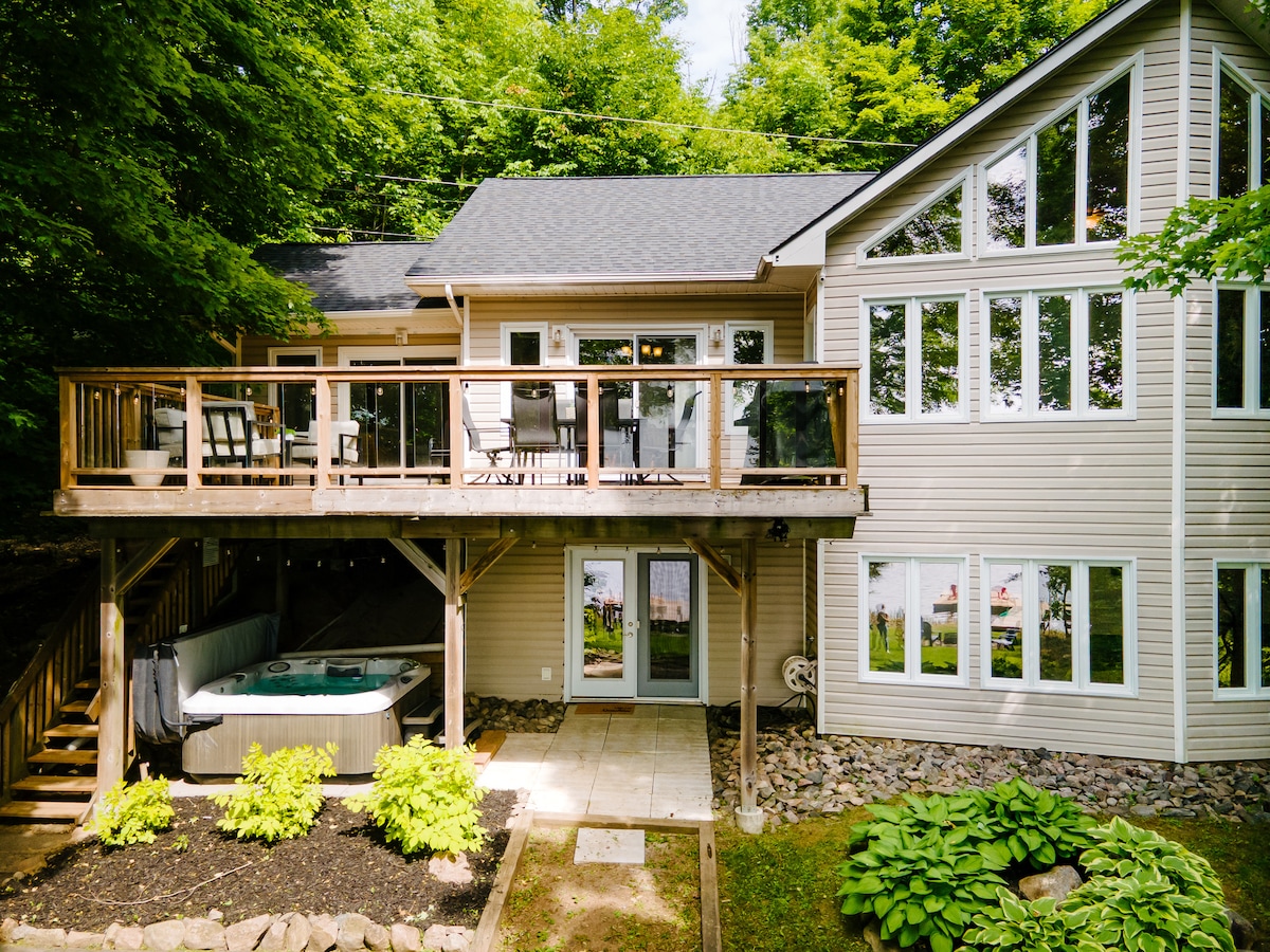 The perfect getaway, ANY SEASON, to relax and enjoy! A private spot for a family retreat, working holiday, girls weekend or guys getaway. The location offers year-round access, including 2 entry points to the water (dock + beach), water toys (kayaks, paddle boat, noodles), screened room, outdoor hot tub, gas BBQ, and oversized fire pit. Close to local trails (walking, ATV, snowmobile), we hope you can call this your short term home. Note: This is not the place for parties or extra guests.