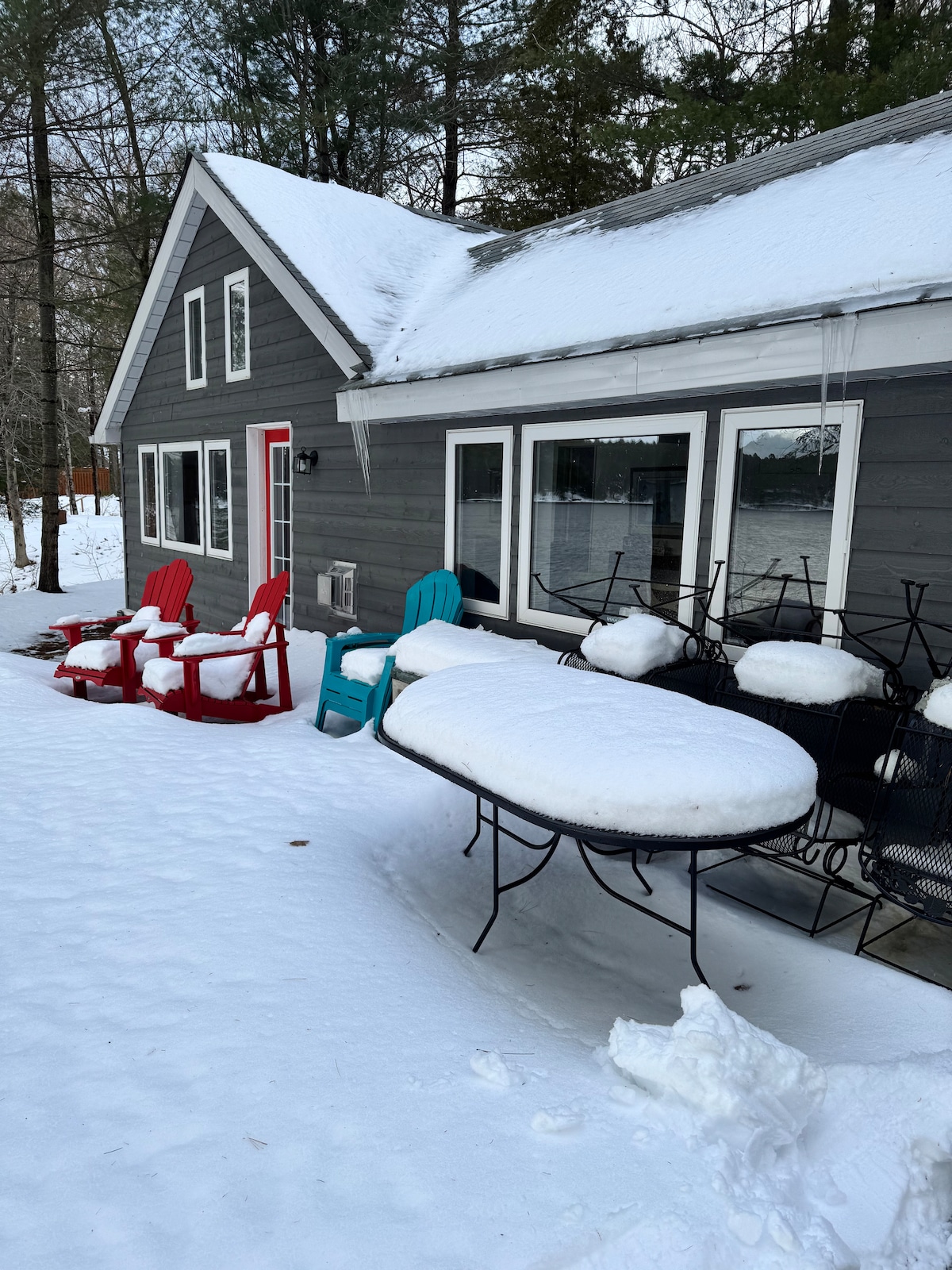 SKI-IN/SKI-OUT Lodge style cabin in a 2 acre forest directly on Sir Sam's Ski & Bike. Enjoy the ease of ski-in/ski-out, snow shoeing, hiking or biking right from the beautiful deck which over looks an 8-person hot tub, 20' sauna and a unique firepit. In the summer take a short walk to Eagle Lake public beach and boat launch for fishing/swimming. Endless adventures near by like the Haliburton Forest, dog sledding, wolf center and so much more! EV fast charging station available for our guest!