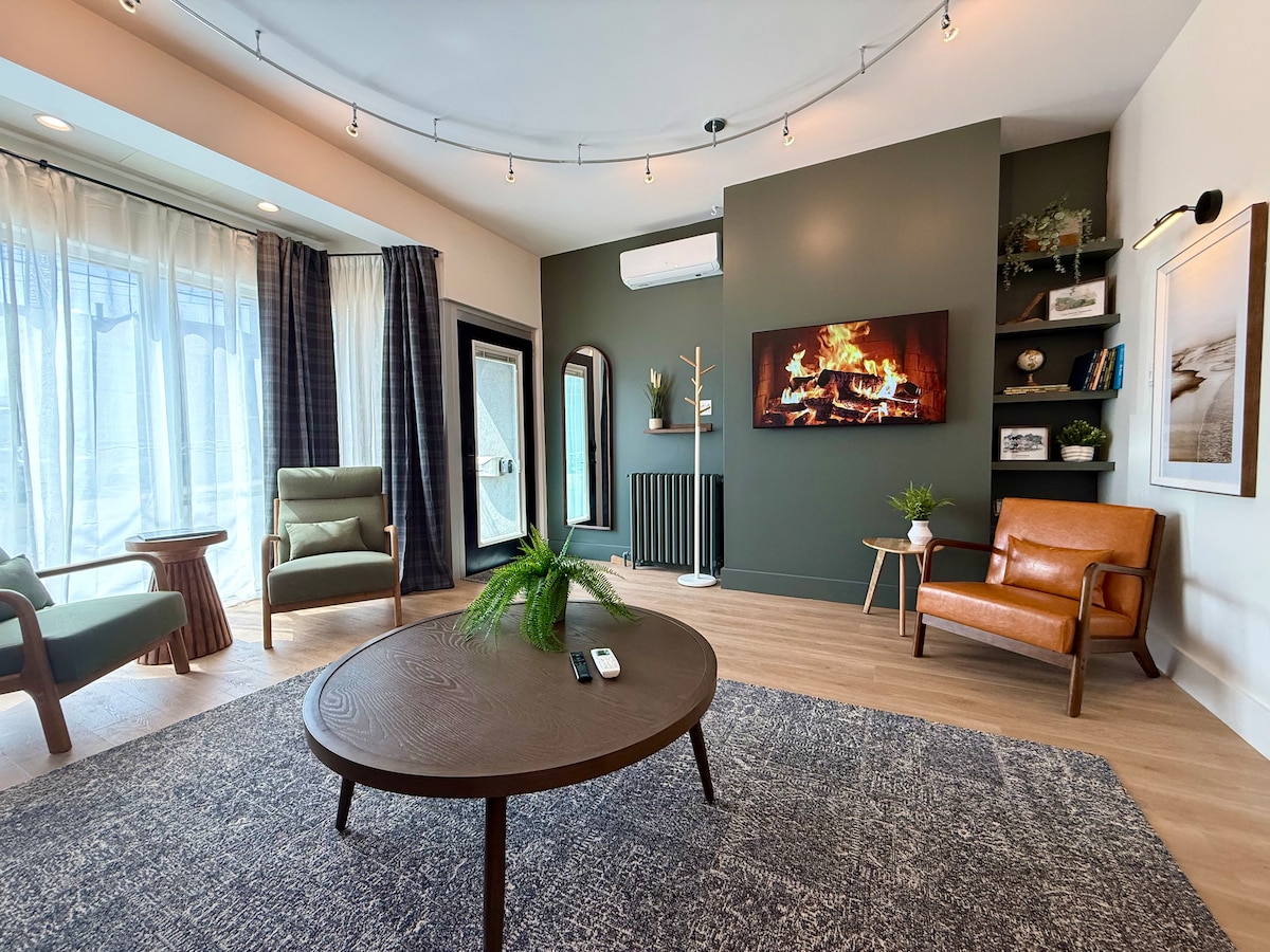 🌿 A lux green suite - relax, unwind and get ready for your next act - you'll find verdant inspiration in these leafy and very green rooms. (and no cleaning fee*) 🏡 Located in the newly built, family-oriented Governor's Brook neighbourhood, this suite is designed with conscious attention to detail and design. High ceilings in this walk-out maintains a spacious feeling in a compact space including kitchenette, workstation, hot tub and more... (*fees may apply under exceptional circumstances)