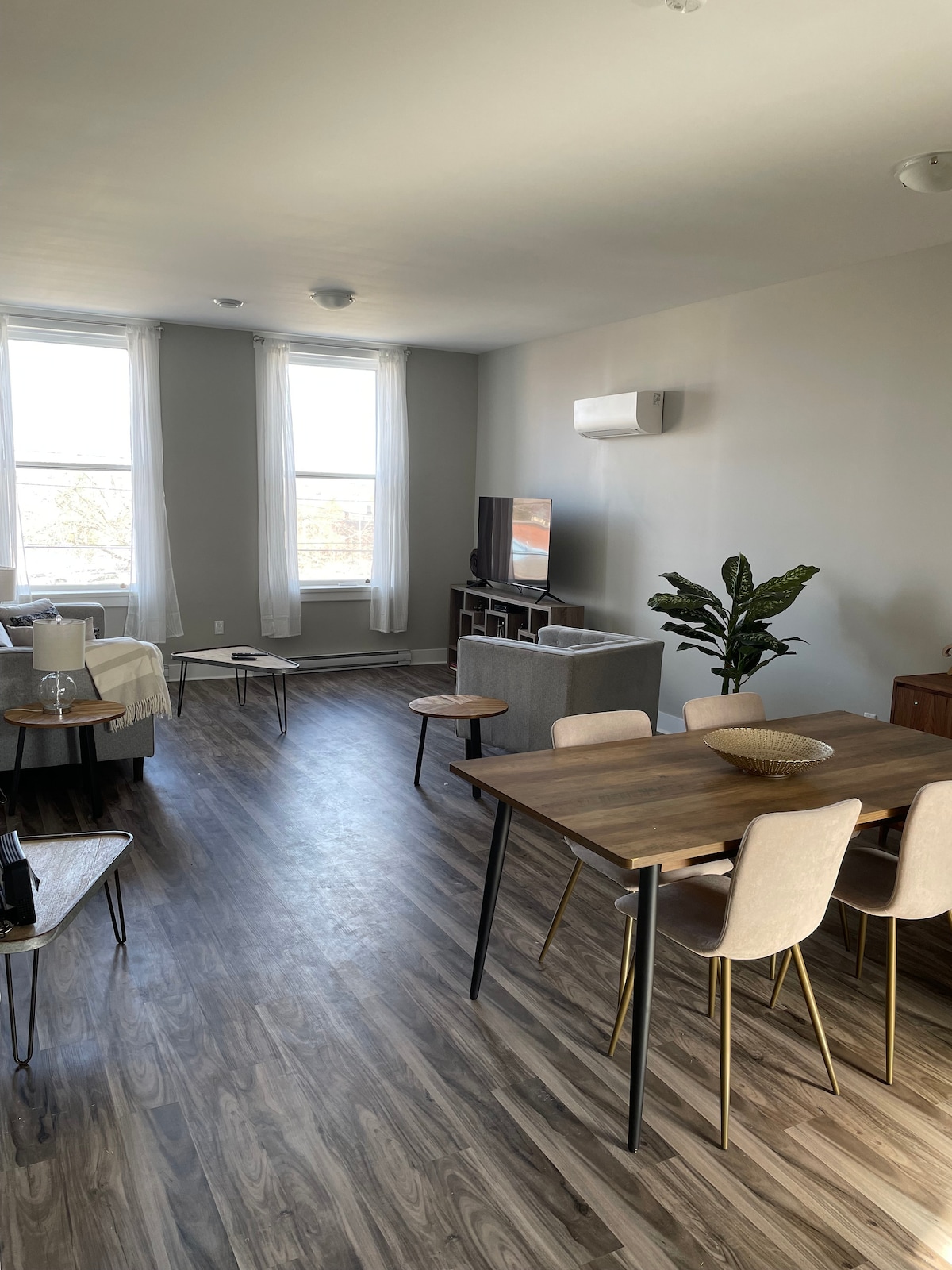 Newly constructed apartment in a former abandoned second floor space in Downtown Windsor. With all the key amenities, you'll have everything you need in the perfect location as your home-base while exploring Nova Scotia! All of Downtown Windsor within walking distance. 20 min drive to Wolfville, 45 min to Chester, 45 min to downtown Halifax, 1 hour to Truro, 38 minutes to the airport, reach any point on mainland NS in 3+/- hours. Minutes from Ski Martock and less than 30 min to valley wineries!