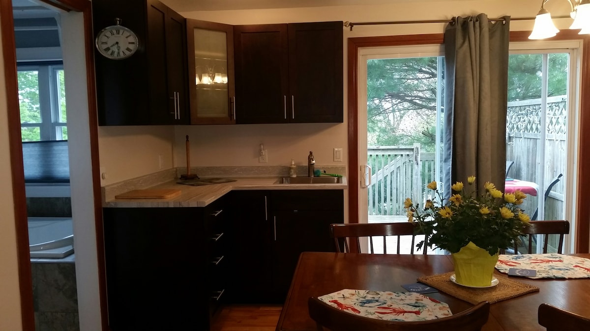 Stay by the Petpeswick Inlet in this cozy, spacious 2 BDR upper suite containing a bright living area, jet-tub, ensuite shower & laundry RM. It's a well equpped simple house offering the 'home away from home' comforts. A family favorite! Pet friendly and only 10 mins to Martinique Beach! There are nearby trails for cycling, hiking! The yacht club offers free kayak rentals for members. The town has basic amenities. There are beautiful sunsets! Groceries are eight mins away. Come and relax!