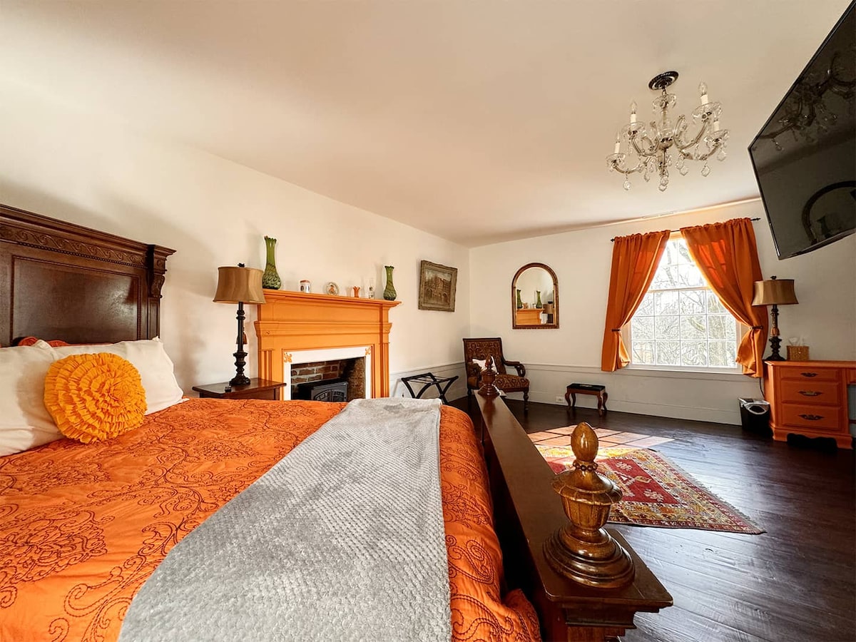 Stay with us in our almost 200 years old beautiful historic home with 23 acres. Our guests enjoy the beautiful rooms with original hardwood floors, private en-suite bath, authentic antiques, premium luxury linens, towels, modern amenities like individual HVAC thermostats and USB outlets. We have 1GB internet and in every room a 43 inch 4k TV. The home is recently (2022) completely remodeled and renovated. We look forward to meeting you and making your visit with us unforgettable.