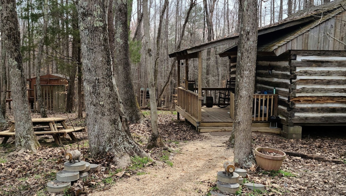 Glamping Adventure awaits -the “Cabin” offers : Electricity, AC/heat, comfy queen bed, sleeper sofa but NO shower and NO running water Hands on farm experience (by appointment) GET AWAY FROM IT ALL romantic getaway OR bring the kids to the country Coffee pot Cooler available Charcoal cooker Outdoor composite toilet (the “tin can”) Deck to relax on Fishing-Small pond (catch and release only) Canoe available Creek Wooded area to hike in No hunting allowed.