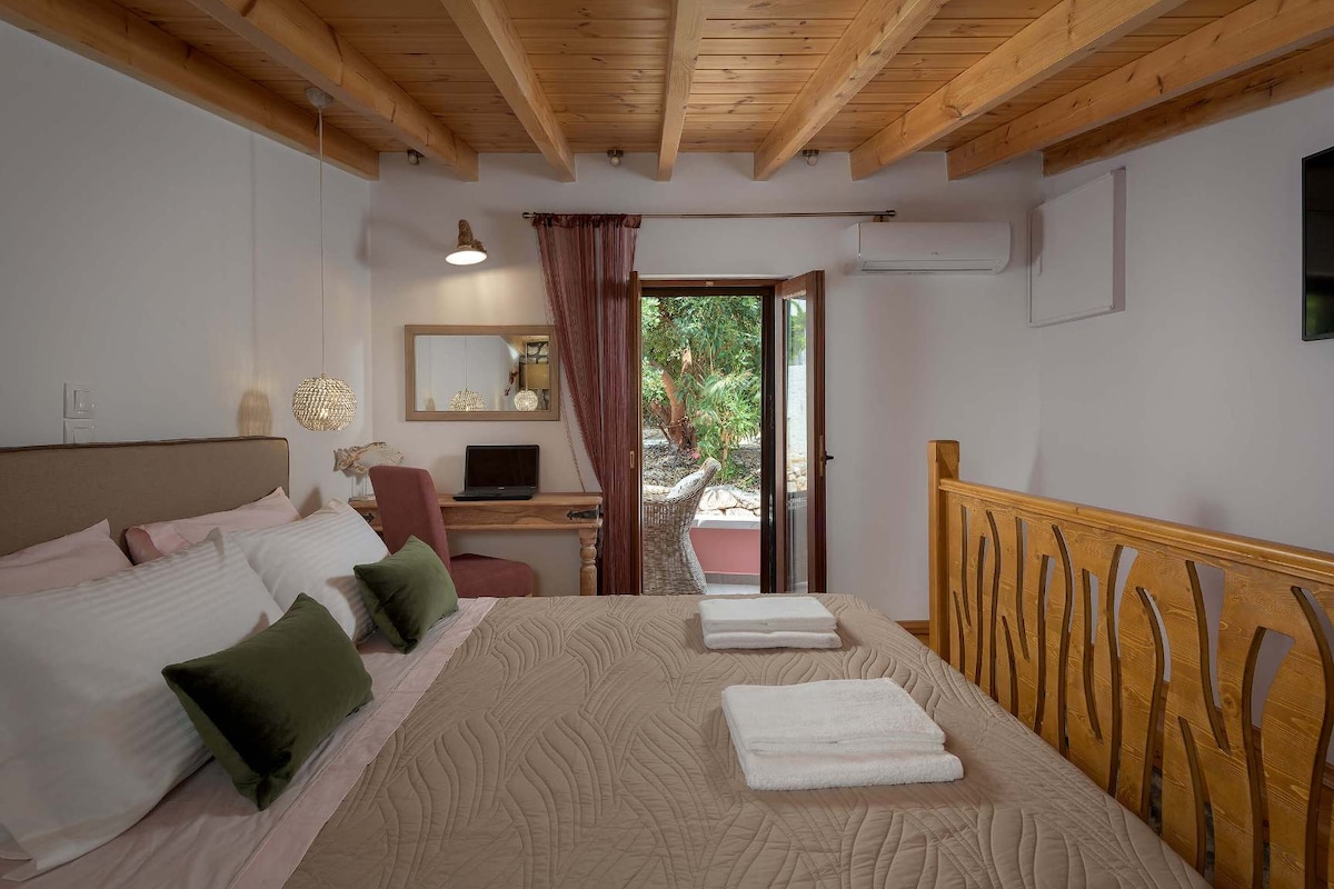 Part of the Ecovilla, within a wonderful natural area close to Prassonisi, the Apartment has private entrance & outdoor space. Direct access (3 mins on foot) to a solitary beach where sea turtles nest. Peace. Passage of deer and other wildlife, our friendly animals free in the garden. You can pick aloe and wild herbs, watch sunset on the sea and starry skies. No strong lights, no crowd nor luxury features. A simple place where beauty is also in imperfection, ideal for special, healthy holidays.