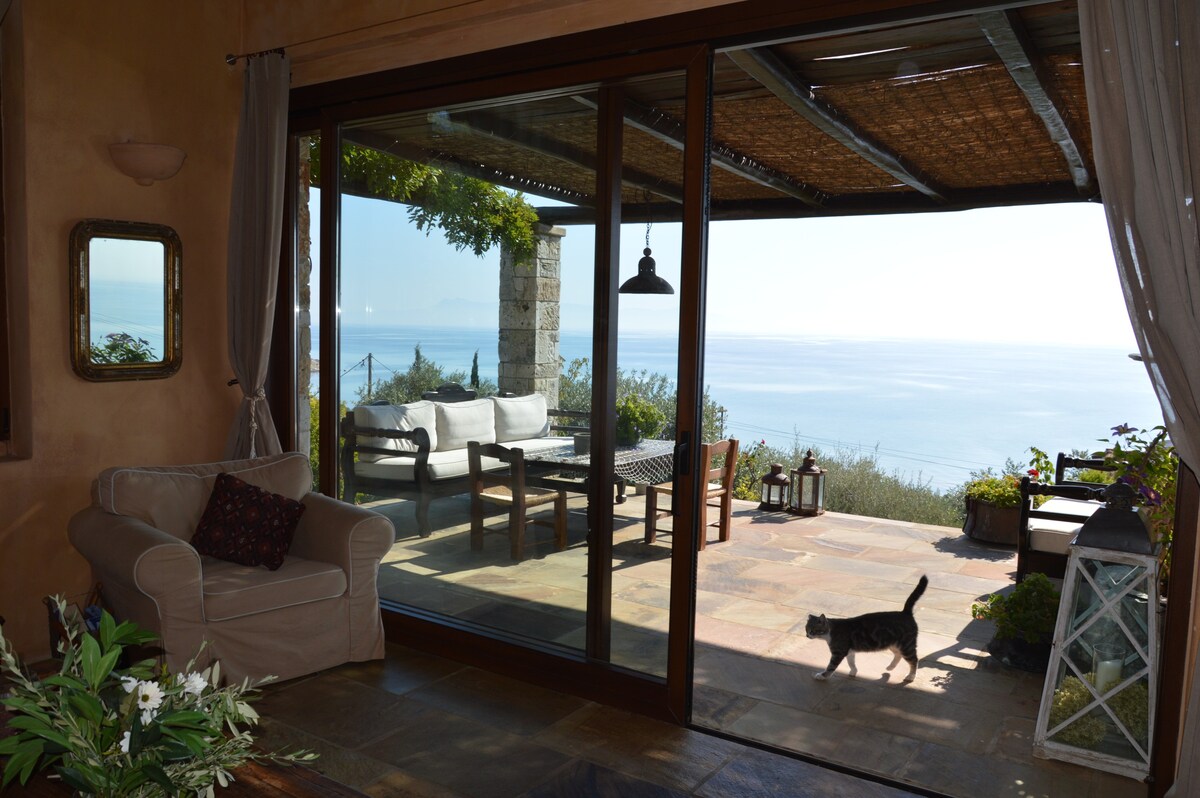 Villa kladi is located in the middle of our olive grove, on the border with the forest. Only for nature lovers "including its guests and rumors". To get to our house be ready for a mini off-road about 1km,(any car can come),between fragrant flowers, wild flowers and olive trees and sometime sheeps as well. The nearest beach can be reached by car in 5 min.The house have a really beautiful view to the sea