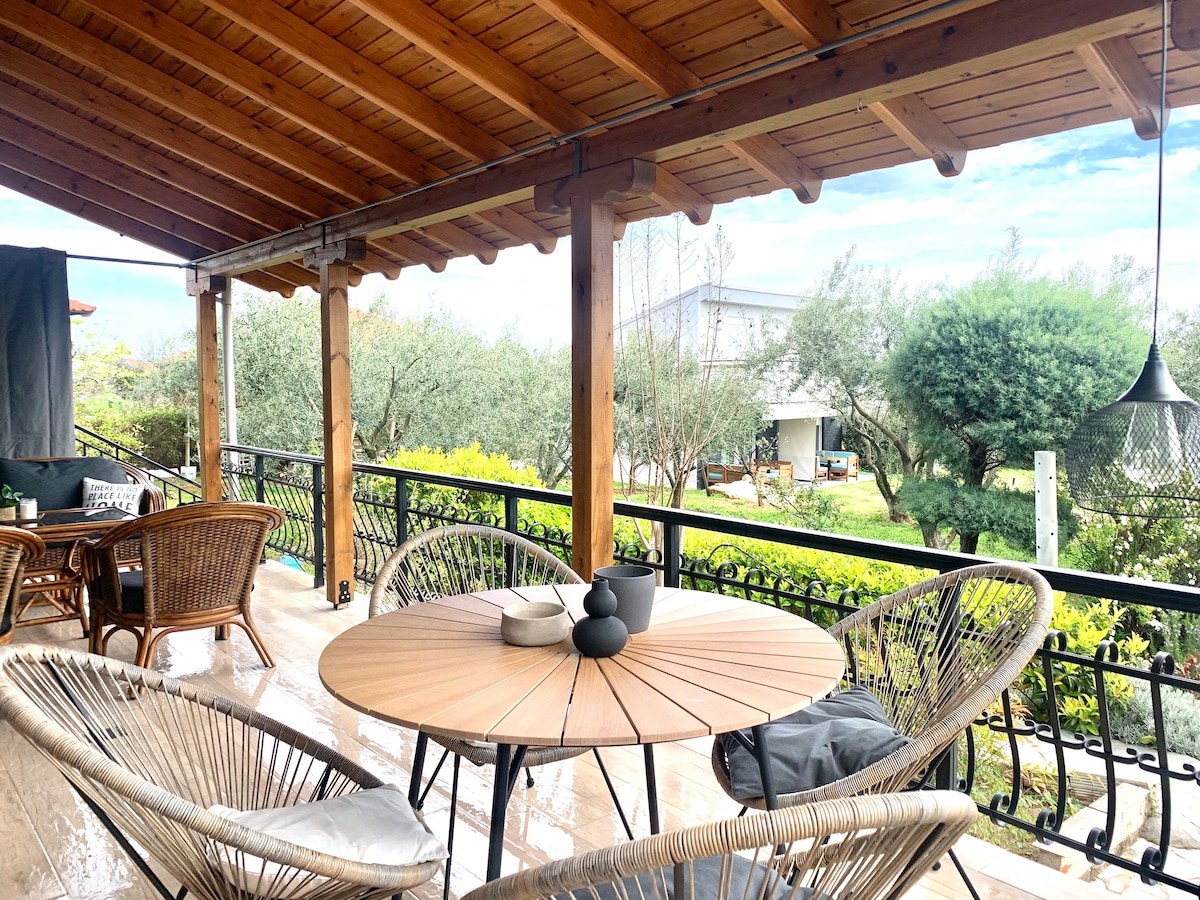 Our house is located in the north side of Asprovalta. You can enjoy your privacy, although you reach the closest beach in 1 minute by car or 10 on foot. It has a large garden with a lot of trees and vegetation, as well as a BBQ area with kiosk. Let your kids play our garden, it's SUPER safe. Note that: Terra holiday home #1 and Terra holiday home #2 are in the same property area. You may rent both of them in case you are on vacation with friends :)
