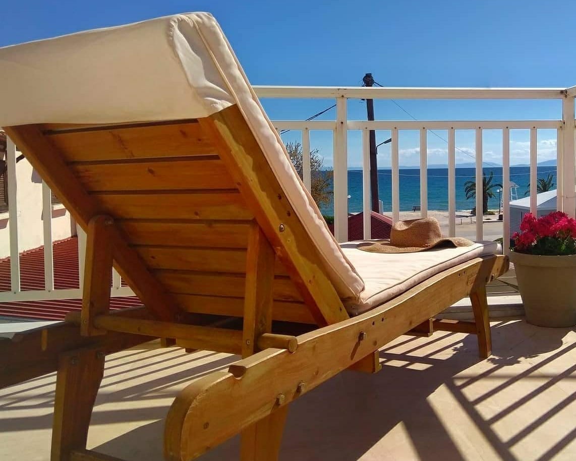With a beachfront position, this exceptionally spacious studio offers spectacular views of the Aegean from the 17 Sqm balcony. Designed to host up to 2 adults and 1 child up to 12 years old or 3 adults. Just 30 minutes from the airport of Thessaloniki is built on the seafront and offers its guests comfort with a friendly atmosphere and it is individually decorated with fine aesthetics..