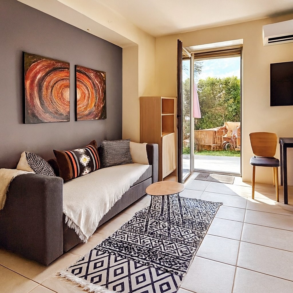 A perfect 1st line location with direct access to the beach in a nice village Skala Fourkas. Full kitchen, bathroom with a shower, storage, big dinner table inside and a smaller one outside. The centre of Fourka is accessible by foot, restaurant is just in the next building, supermarket is in 2 mins.