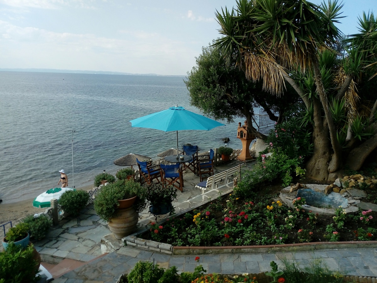 -A very convenient house right on the seafront with incredible views and direct access to the sea. It has two bedrooms, a living room/extra bedroom, a kitchen and a WC with a Shower, offering views while you relax. -You will have the house for yourself (PRIVATE) but please note that the garden and the front terrace balcony is SHARED with another Family. - THE AREAS ARE DESIGNATED and everyone has their own side at the balcony and at the garden.