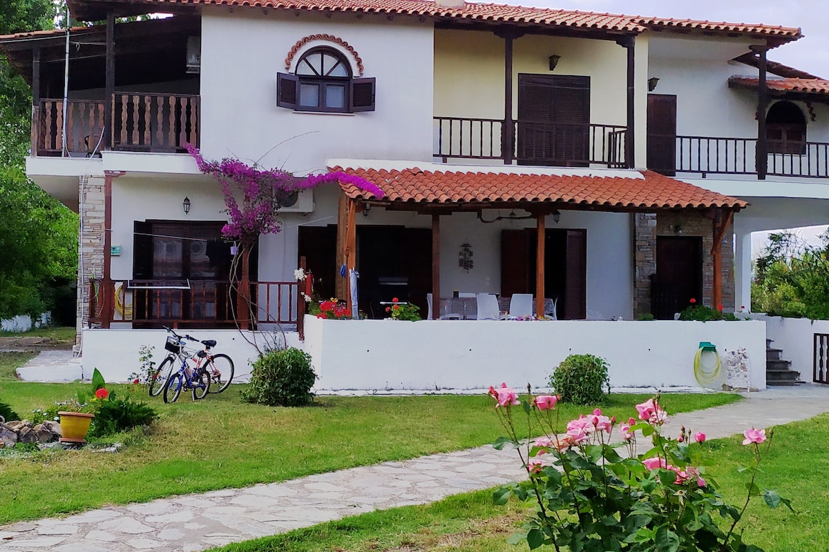 A beautiful maisonette two floors, with a nice, communal garden 3 acres. Only 100m. from the house you can find a quiet, family beach where you can enjoy swimming and also you can rent a boat for great walks on the famous beaches and the clear waters of the surrounding area! 500m. there's mini market. Wi-fi, A/C, appliances, big garden, loose spaces, parking in the house. 3.5km from the beautiful "Vourvourou", 9km from the graphic "Ag. Nicholas", 12km from cosmopolitan "Nikiti"!