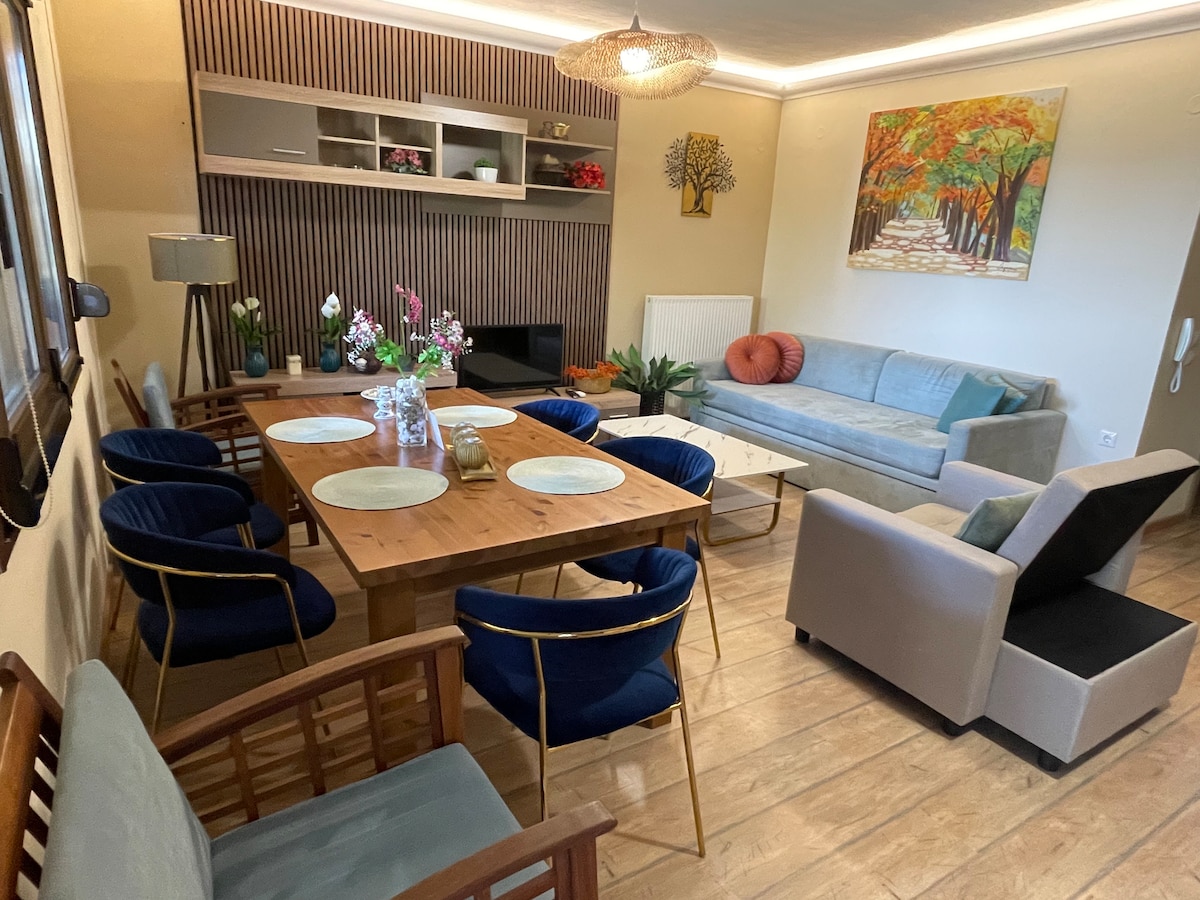 The Villa is located on 4000 sq.m. You consist of 5 independent autonomous and fully equipped apartments. We are in the countryside with a view of the Sea, Thessaloniki, Olympus and sunsets It is recommended to have a car as the villa is located on a small hill that offers. amazing views. All apartments have appliances Access Points and are connected to the main router via Ethernet cables. All apartments have a private garden and outdoor furniture 100% Privacy. 100% Freedom.