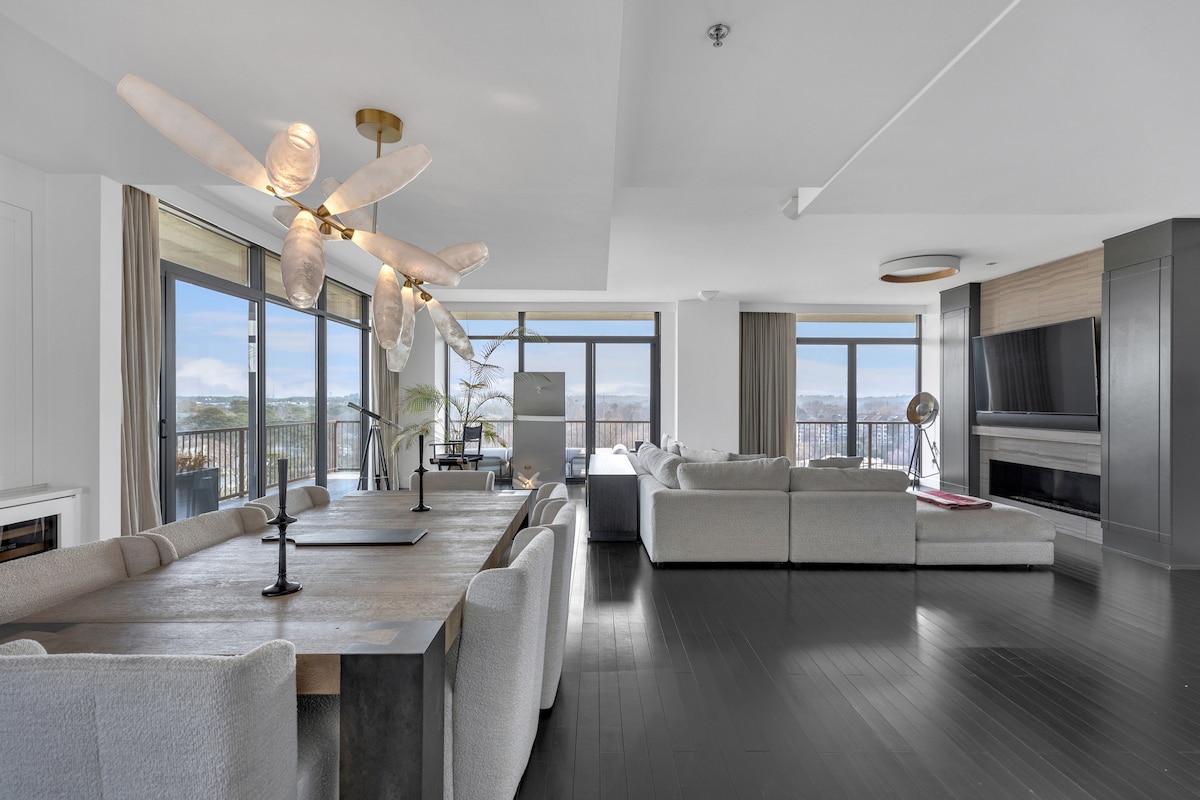 Lakeside with 3 Bedrooms 2 baths. 2 secure entries including a private rear entry. Beautiful wide views of the Lake, clear deep water, great fishing. Upscale resort-style double boat slip dock with huge 32x32 upper sun deck 20 ft up from water surface. The private apartment has a full kitchen, open living space, fireplace, patio and a gated deck with hot tub. Also features a large rock patio with fire-pit & access to sauna & fitness room on main level. Theatre room available upon request
