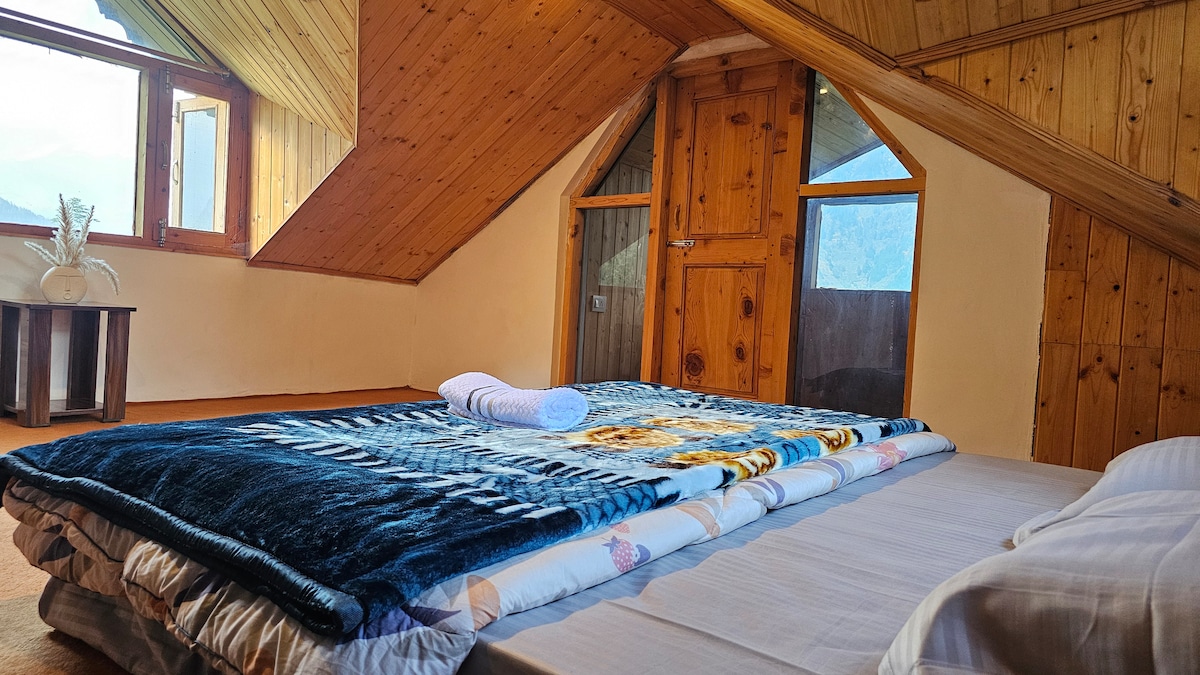 - Entire top floor - Common sitting area with heating setup(shared with host) - Co Living with a himachali family - Homely food - Transparent roof (Attached with common space). Can be used for stargazing - Balcony attached with every room - Wanderlust green garden - High Speed Internet - Two room with mezzanine floor which can accommodate four per room and one single room can accommodate two atleast - Kitchen, room heater & bonfire/tandoor are chargeable and payable at hotel directly No lifts