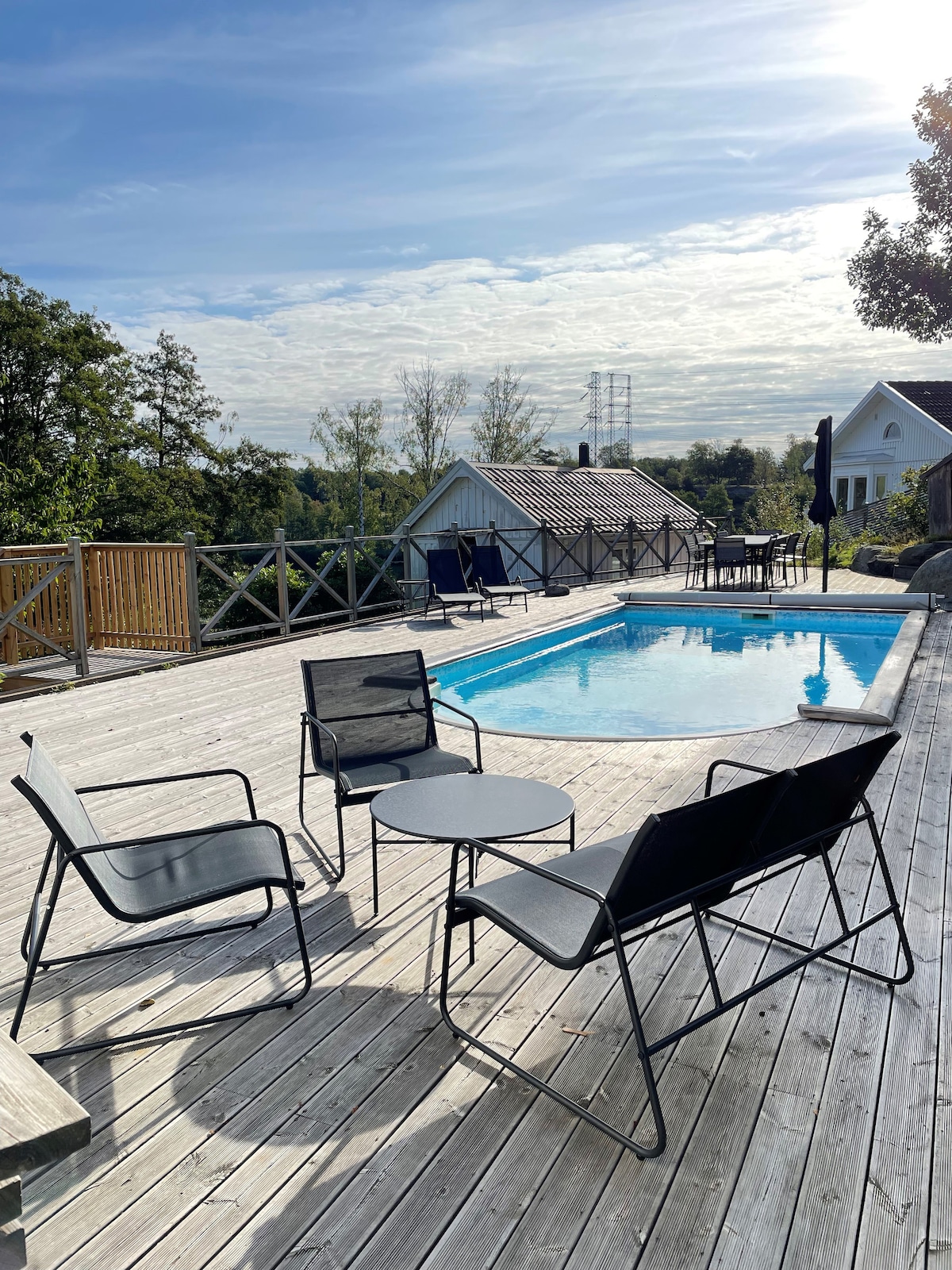 Ha kul med hela familjen på detta ljuvliga paradis i Onsala. Ett stenkast från havet finner ni denna pool villa med 3 sovrum och gym. Tillhörande gästhus med dubbelsäng och en 90cm säng. Stor trädgård med studsmatta och olika typer av utelek. Stor uteplats med pool, utekök, matbord och loungedel På gångavstånd till havet för salta bad. Lekplats 200 meter från huset. Tillhörande badbod vid Vickans badstrand på promenadavstånd från huset Väl mött! Hälsningar Johanna och Carl