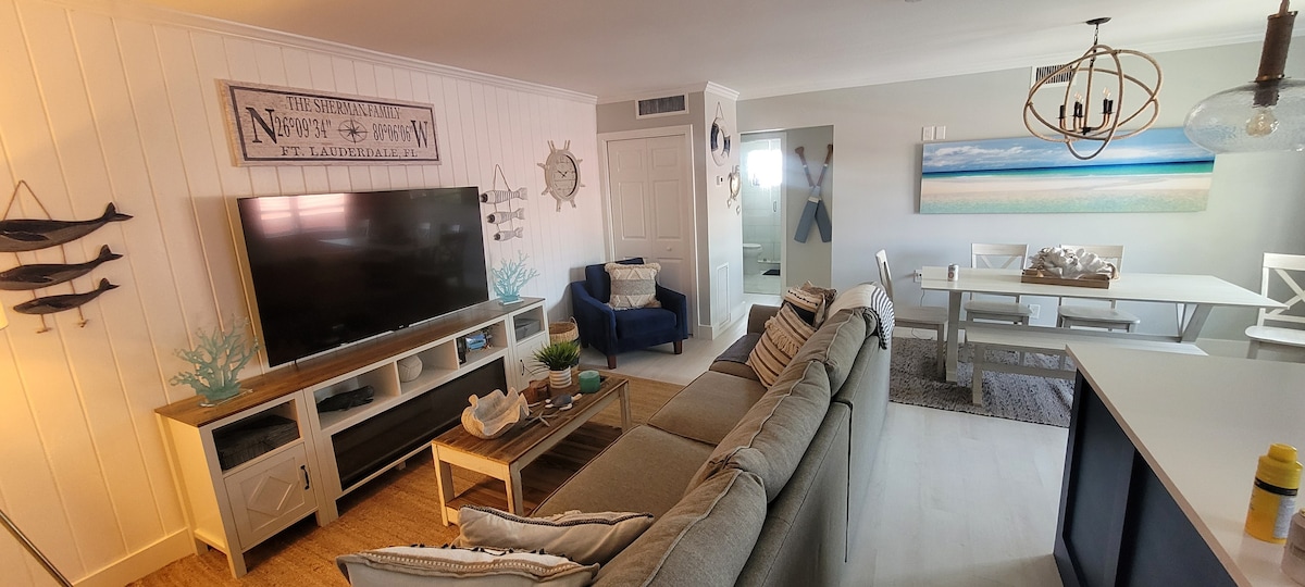Escape to our vibrant retro chic style suite in Fort Lauderdale, ideal for beach lovers and explorers! With a pool view, cozy bedroom, and eclectic amenities, it's perfect for families or friends seeking a blend of comfort and style. Enjoy nearby beaches, a shared pool, and a charming outdoor area. Our unique space offers the warmth of home with the convenience of an ideal location. Ideal for those who appreciate tropical charm and a relaxed atmosphere. Near Port Everglades, airport & downtown.