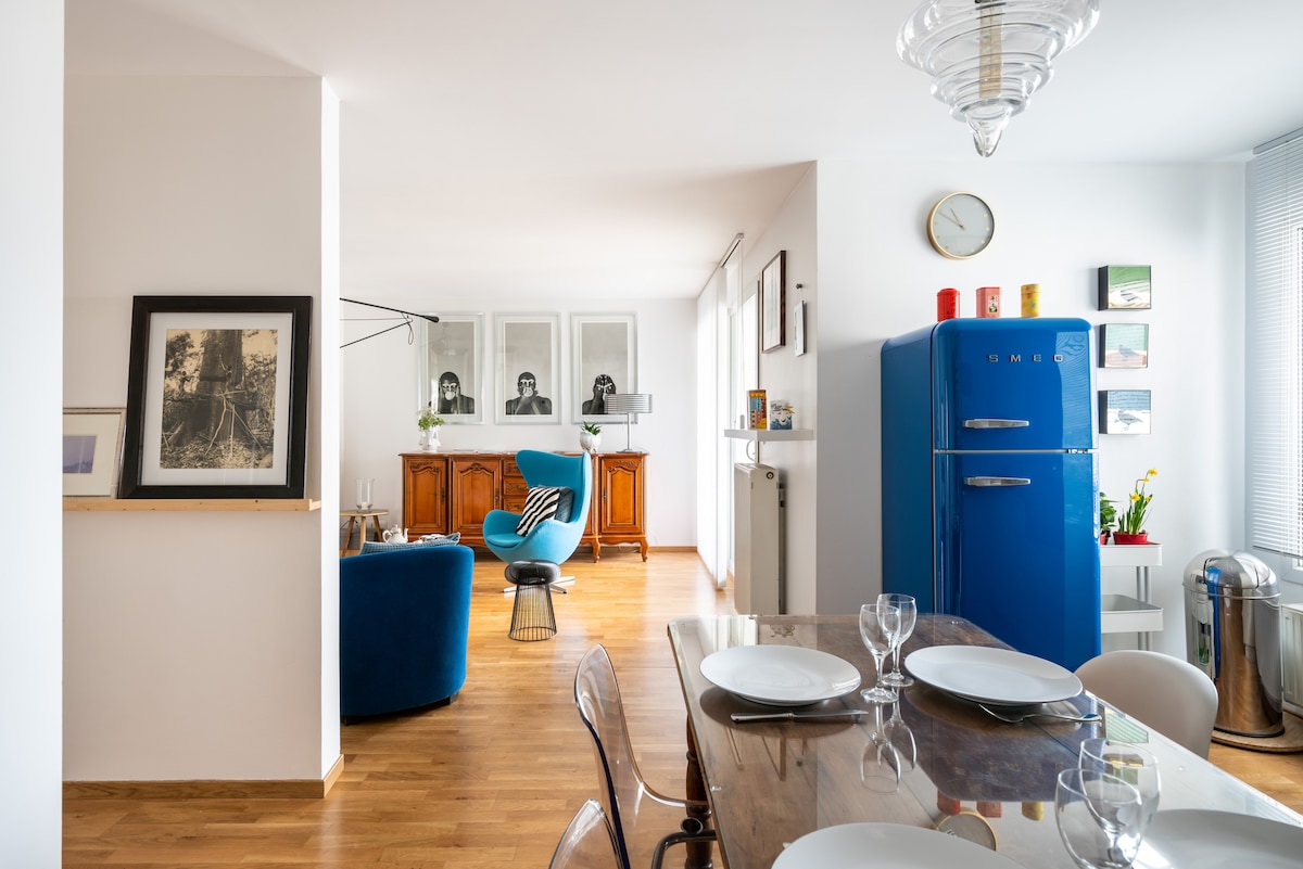 The apartment (45m²+ private patio) is located on the banks of the Saône, a 5-minute walk from the historic old Lyon district. Located on the 1st floor (no elevator), hillside of an old building on the bank of the Saône river, the building corridor is a little rustic (17th century). The apartment has been fully redesigned, keeping its authenticity. I made it my refuge, away from the hustle and bustle of Lyon. However, this place is not to everyone’s taste 😊. I describe later the pros & cons.
