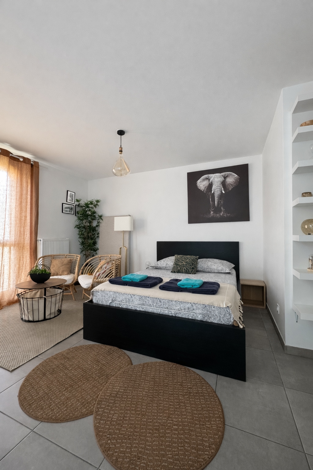 04/02/2025 : high-quality new bedding. You will be welcomed in a brand new air-conditioned flat with a cosy atmosphere and a small private balcony. The flat has been entirely designed and decorated with the comfort of our Guests in mind, so that you can enjoy an unforgettable experience during your stay in Lyon 8ème. Relax in calm and elegance. You will be close to the Tony Garnier Museum, the Maison de la Danse, the famous Gerland district and 5mn from the city centre and Place Bellecour.