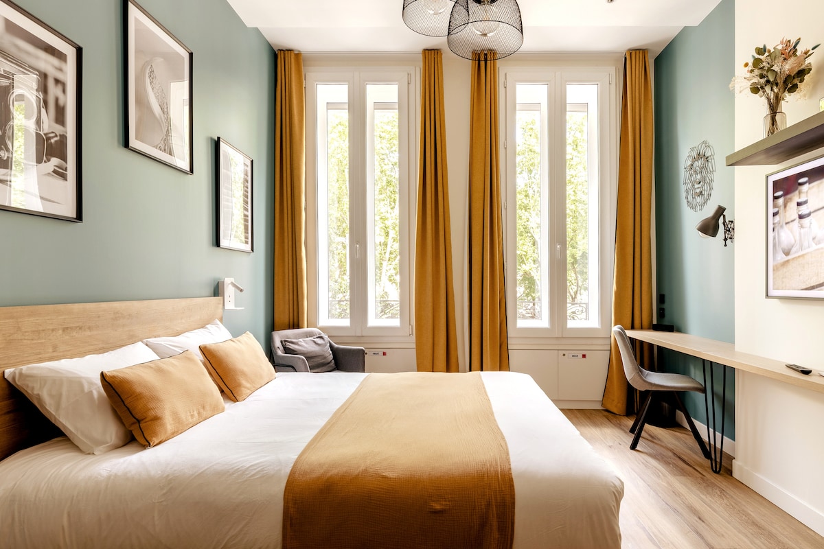 MODERN AND BRIGHT APARTMENT WITH A GREEN BALCONY overlooking a peaceful square in Croix-Rousse. Spacious and comfortable, it features a queen-size bed, a washer, a dryer, and all the essentials for a pleasant stay. Close to public transport, with bed linen, towels, and toiletries provided.