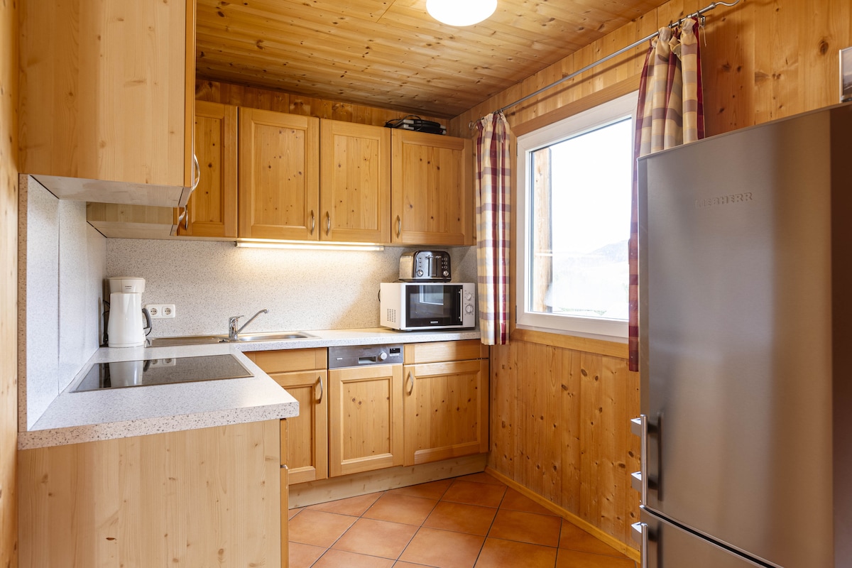 Auf zwei Etagen bietet das urige Holzhaus alle Annehmlichkeiten für erholsame Urlaubstage - Wohn- und Schlafräume (1 davon Durchgangszimmer), eine voll ausgestattete Küche mit Geschirrspüler und Mikrowellenherd, zwei Bäder mit getrennten Toiletten, einer Waschmaschine einen Wintergarten, zwei Carports, Balkon und Terrasse. Das Ferienhaus liegt nur 300 Meter vom Berghotel Lämmerhof entfernt. Die Wohnfläche von rund 110 Quadratmetern bietet Platz für bis zu 8 Personen.