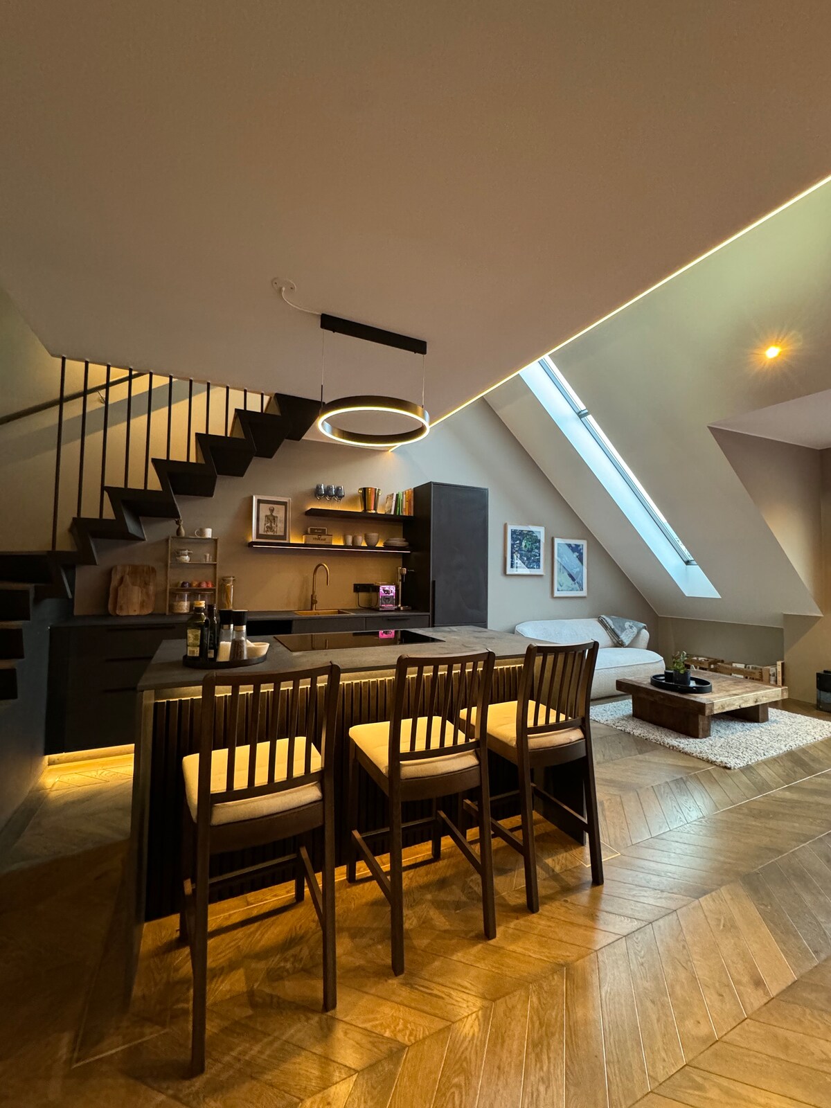Luxurious rooftop apartment in the heart of Reykjavík, right next to pretty much everything downtown. Only a short walk to all the best cafe's and restaurants, libraries, museums and shops. The apartment is located in a unique early last century wooden house which was once called the palace of Hverfisgata. Recently renovated it retains all the charm of old but with all the comfort and style of modern day life. Please note that there is no elevator in the building.