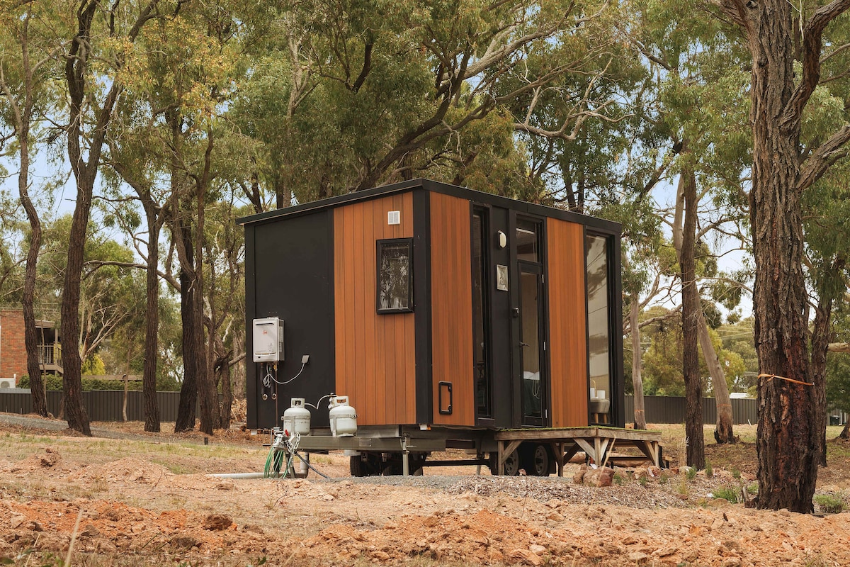 Luxury container stay near Hollow Mountain in the Grampians. Enjoy a cosy double bed, modern bathroom & kitchenette. Relax by the firepit under the stars, surrounded by nature and wildlife. Perfect for travellers seeking comfort, style, and serenity in a stunning bush setting. Please note we can accomodate up to 2 guest.