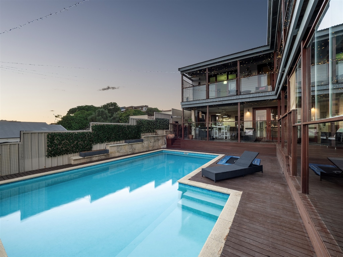 This peaceful 4 bedroom ocean front modern home with luxury furnishings and solar heated swimming pool is perfect for a relaxing getaway. The clever design of this home means that 3 of the 4 bedrooms along with the kitchen and living spaces all have views of the ocean to take in. Spend your time chilling out by the pool or take yourself for a stroll along the beach and up to the local cafe and shopping village. Take in some of WA's most stunning sunsets overlooking the pool and Indian Ocean.