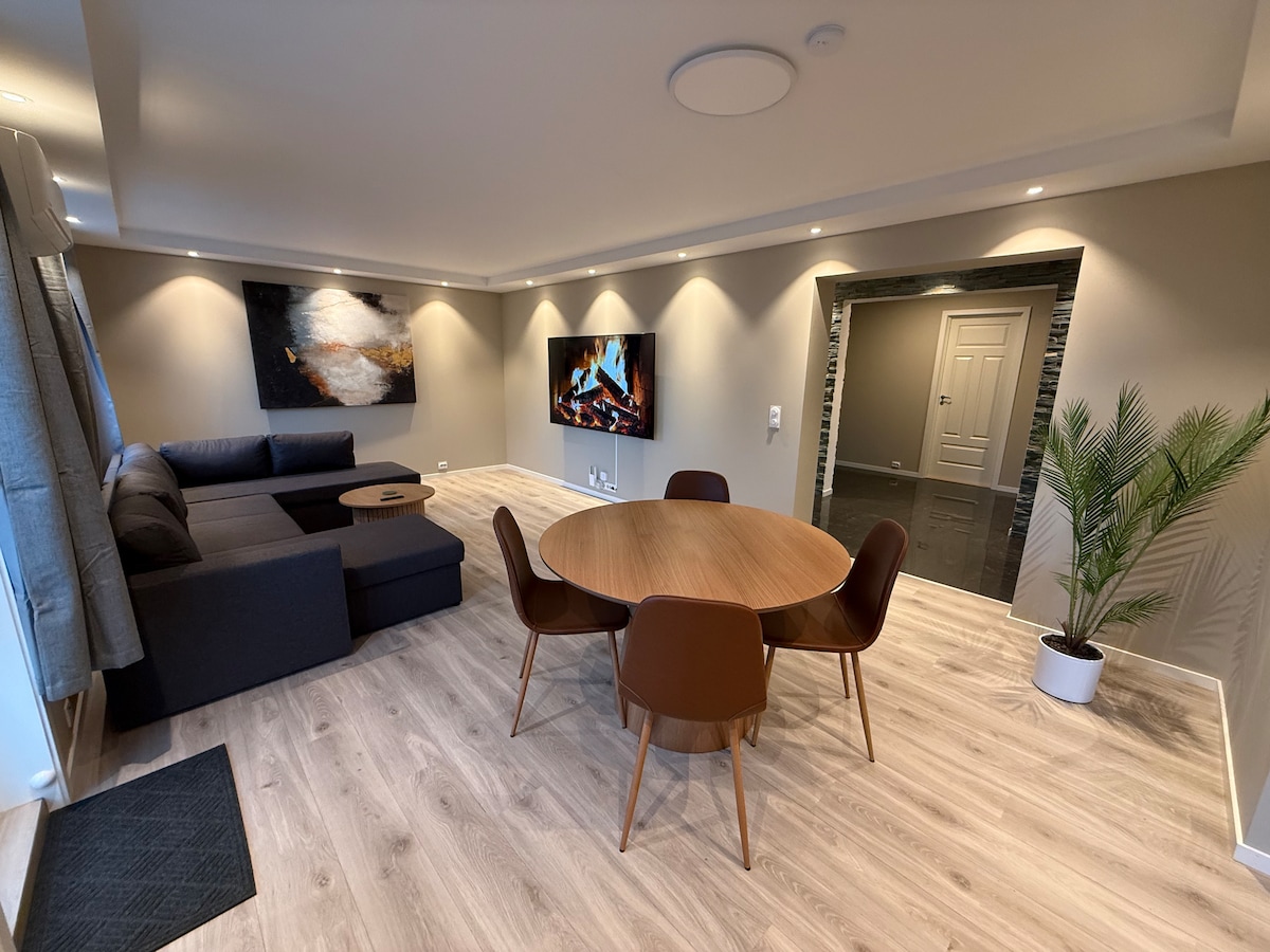 Start your next adventure in our picturesque 3-rooms rooftop apartment in the heart of the city. Here you’ll be greeted with incredible views over Kristiansund. It is fully equipped to be your home-away-from-home. The kitchen is fully equipped with appliances and all you need for coffee each morning! Enjoy your meals together around the dining room table, or relax in the comfy space includes a flatscreen TV. Private free 1 car parking is located behind the building. We hope to see YOU soon.