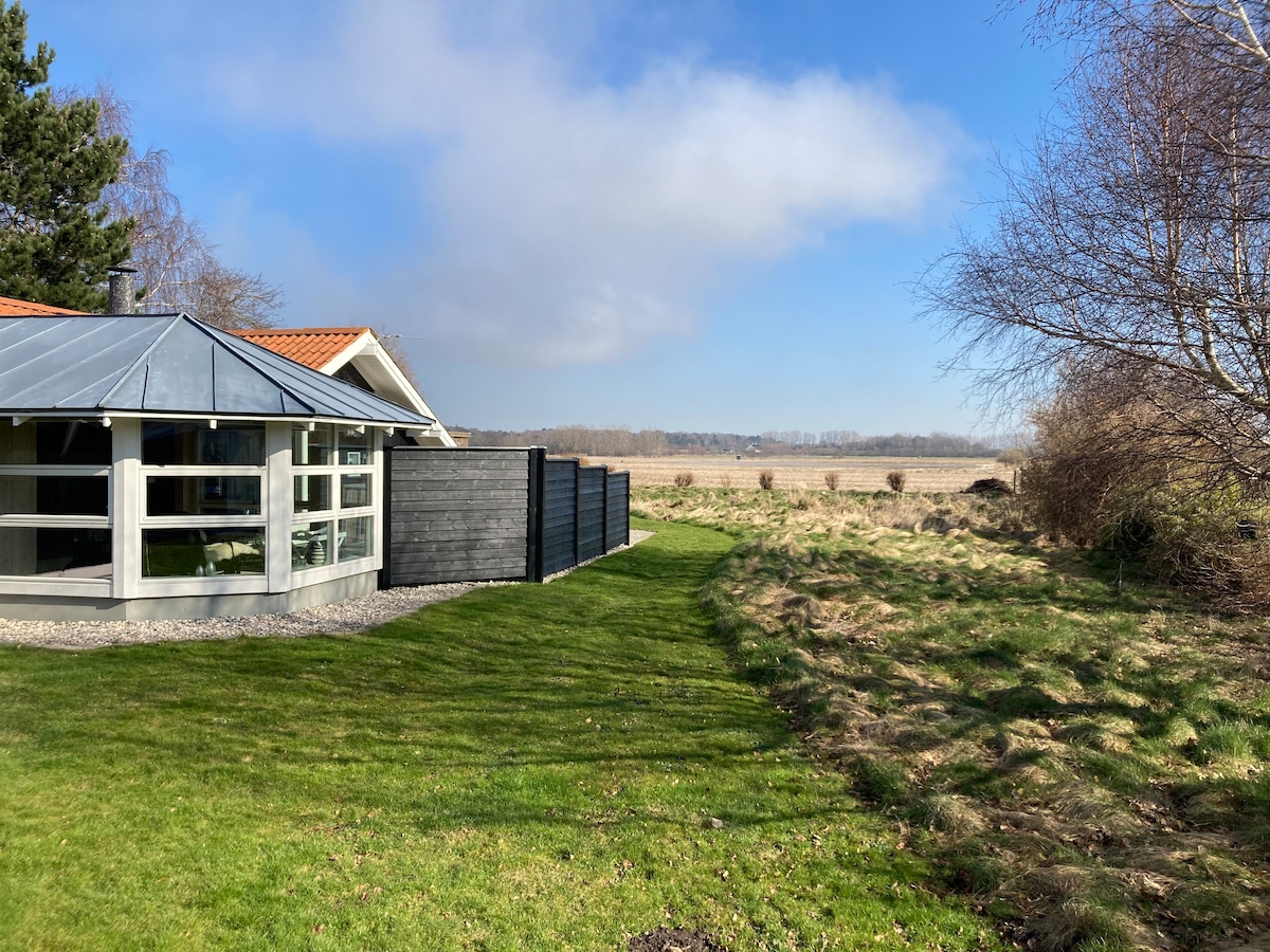 Skoven som nabo og udsigt over markerne. Det perfekt fristed langt fra larm og os, tæt på strand og aktiviteter. Der er 4 soveværelser og en rummelig hems. Der er et stort badeværelse, samt et toilet som tilgås udefra, med tilhørende udendørsbrus. Køkkenet er et snedkerkøkken med Miele hvidevare. Hop i vildmarksbadet og en tur i saunaen. Huset har i alt 5 trådløse højtalere. I hjørnet af haven er der anlagt en bålplads med en gynge hvor hele familien kan lave snobrød over bål