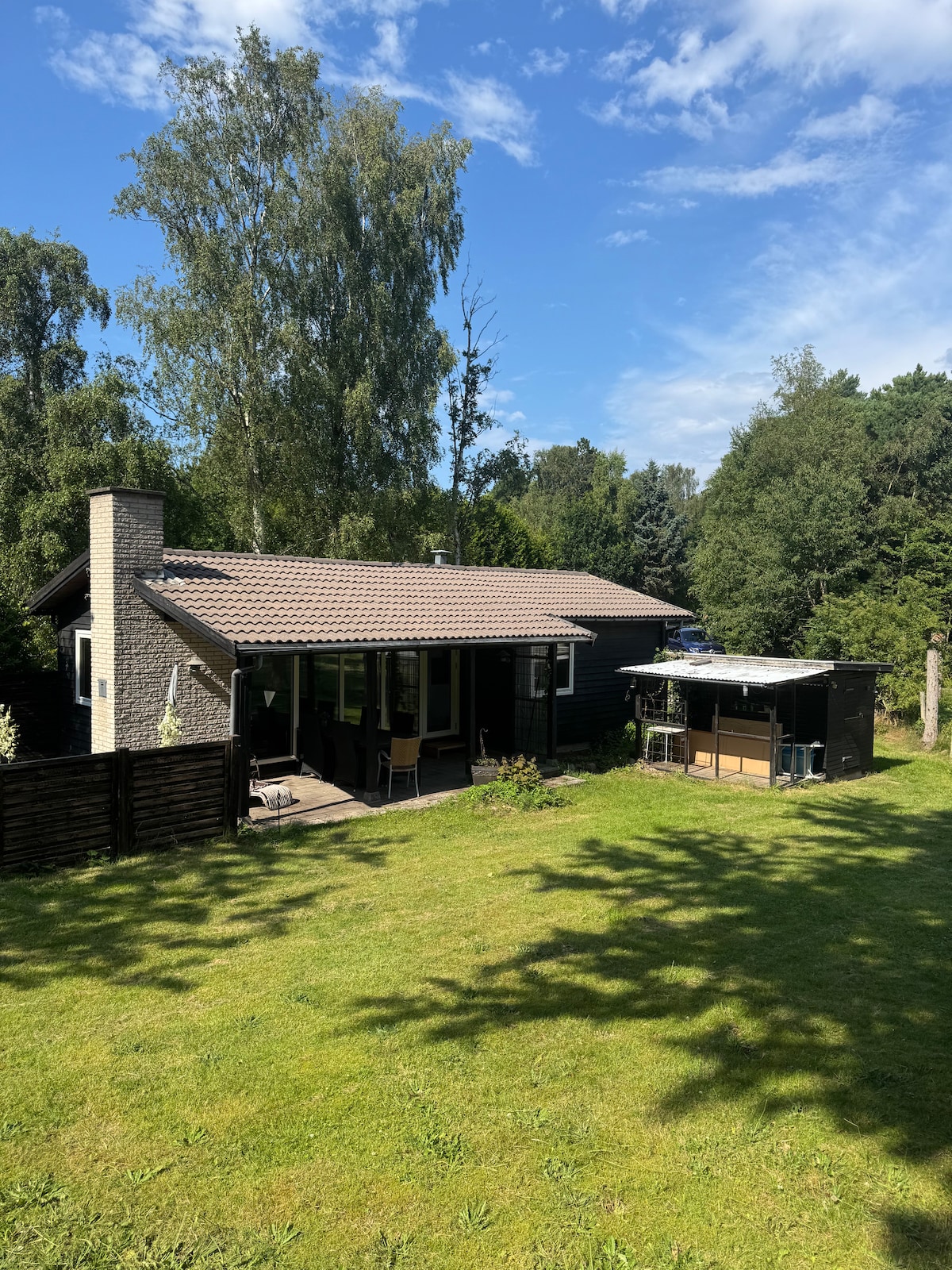 Lovely cottage of 70 square meters located directly down to a lake - close to child-friendly beach. Cozy with classic furniture - fireplace - barbecue - washing machine with built-in dryer - good parking conditions. Bathroom with shower and toilet and underfloor heating - internet - TV package. You can use our wall charger to charge your electrical car (Payment per KW)